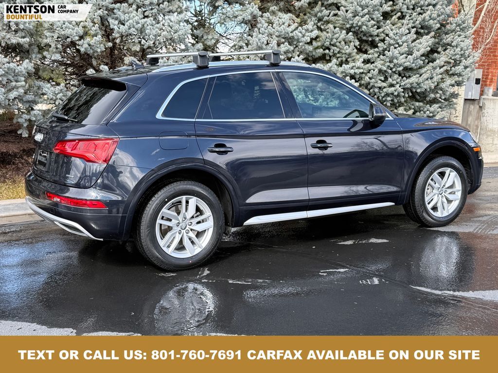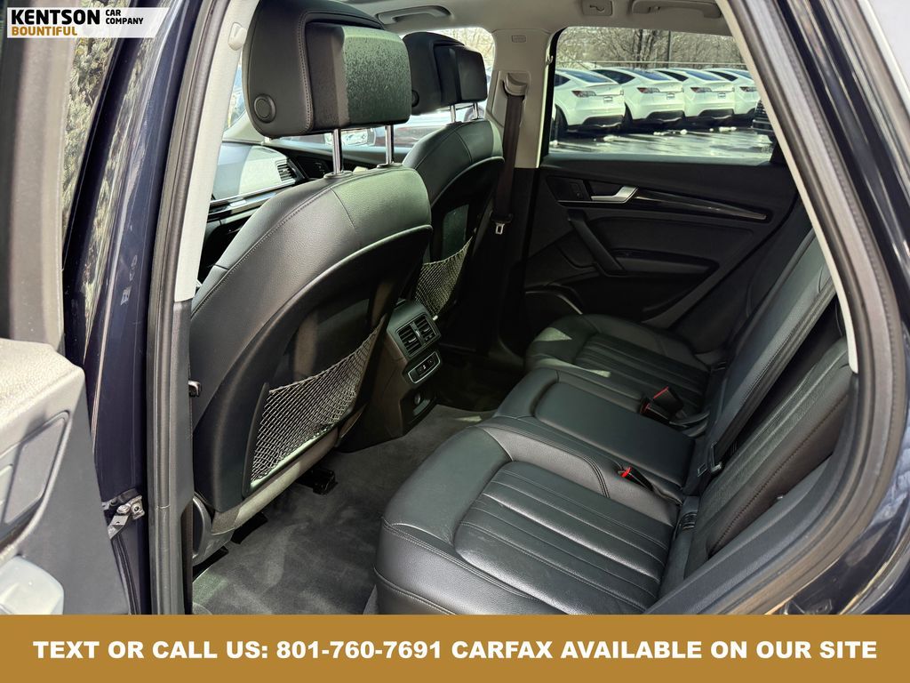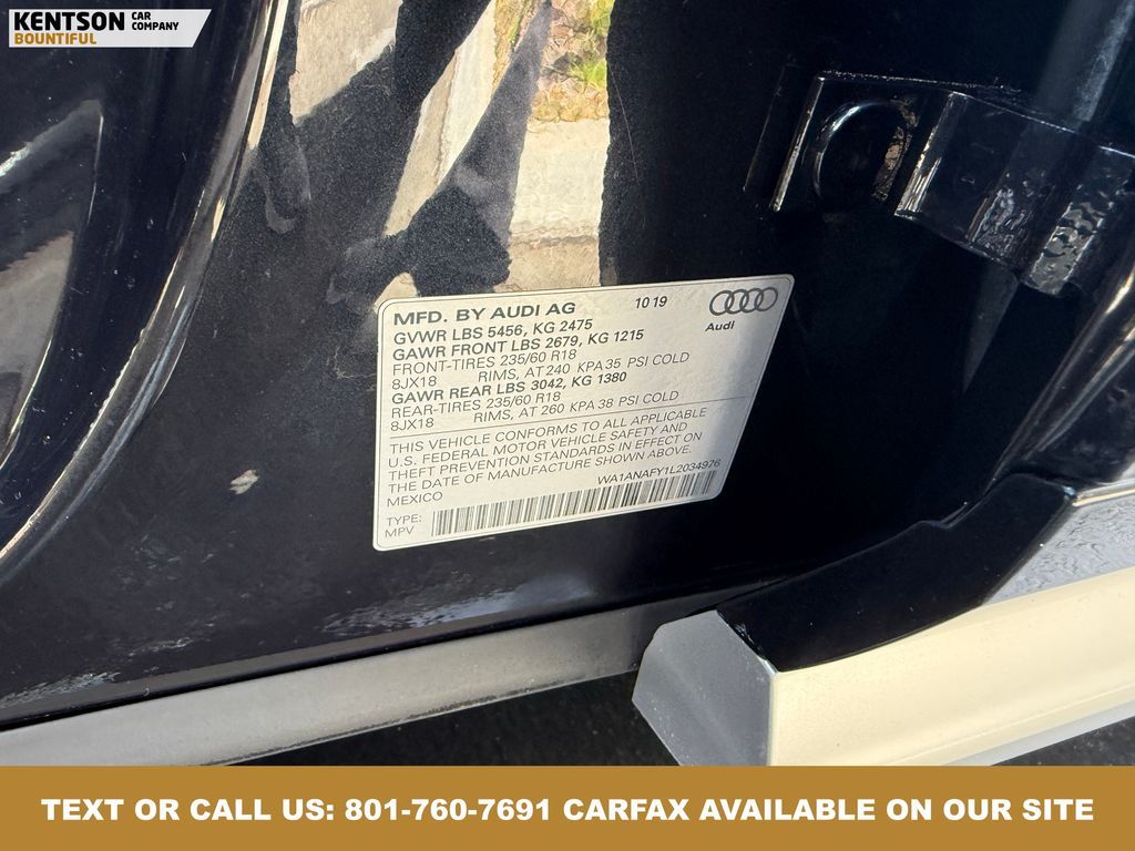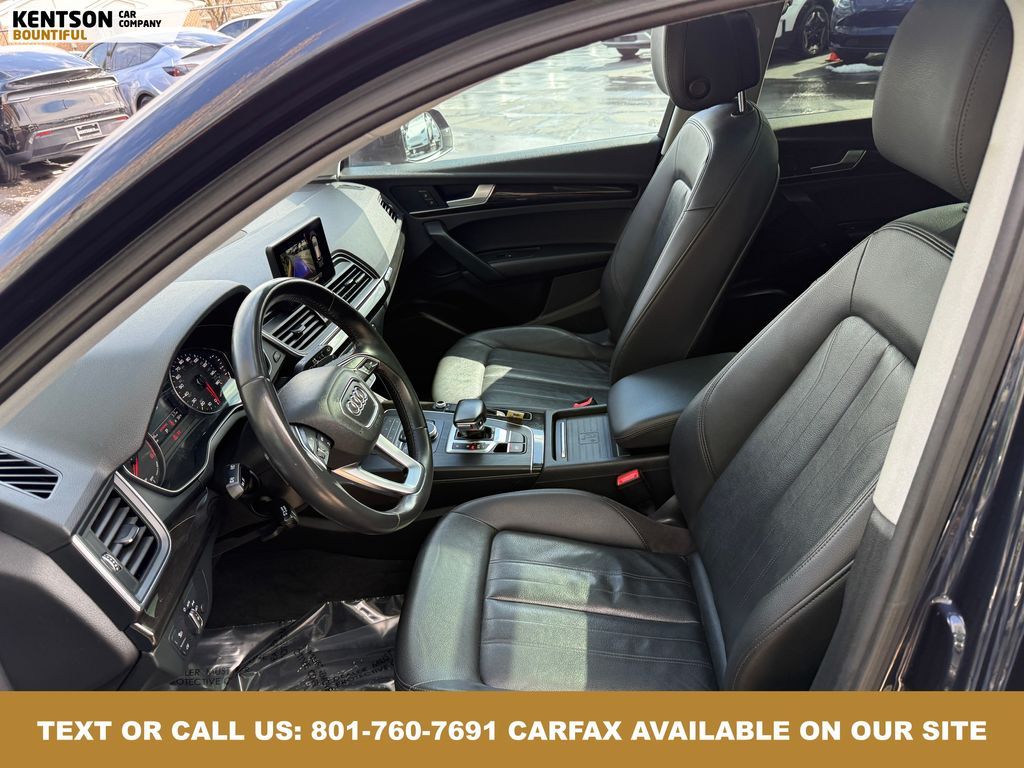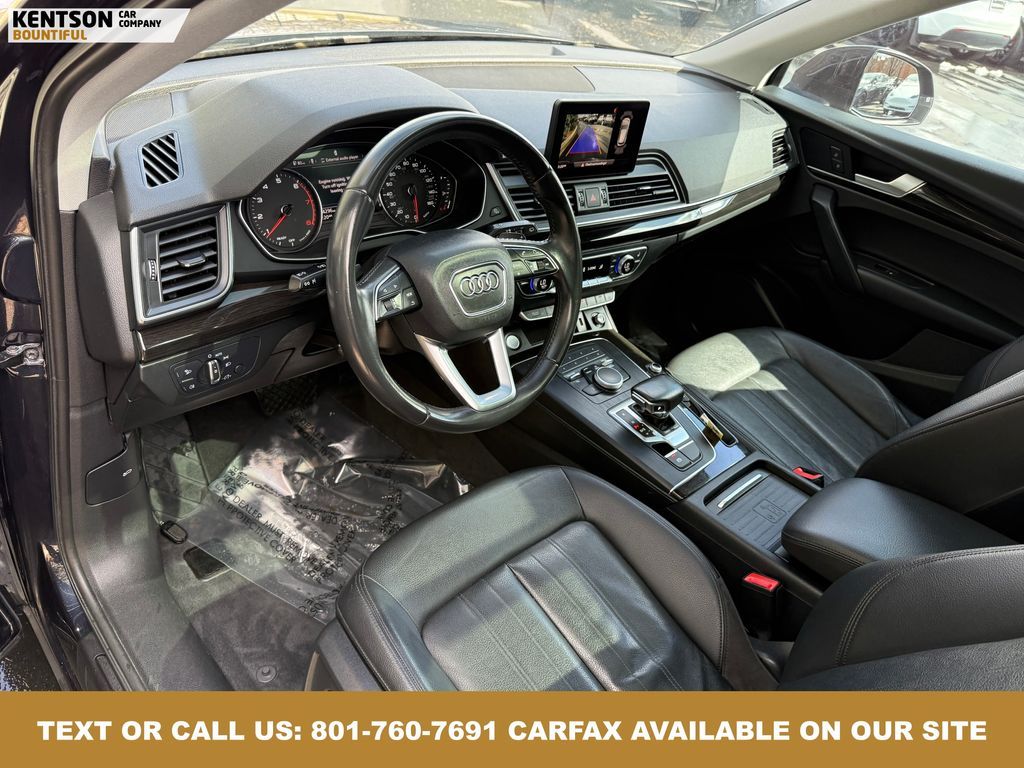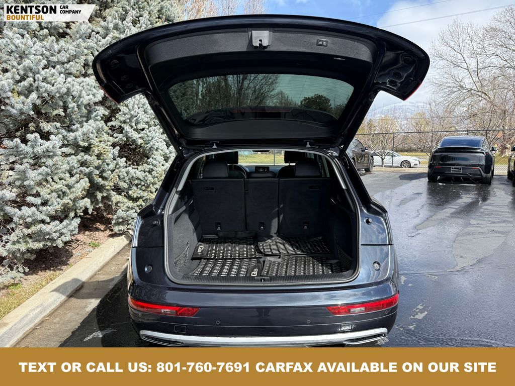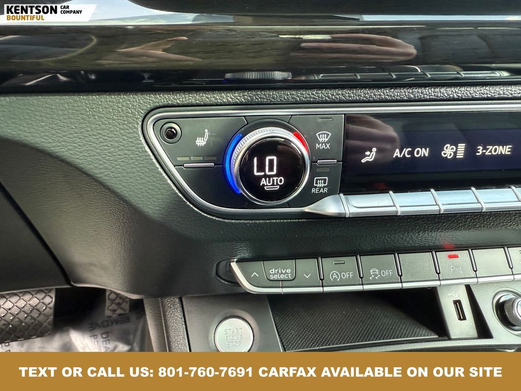 Convenience Package, Convenience Plus Package, Leather, 10 Speakers, 4-Wheel Disc Brakes, 5.302 Axle Ratio, ABS brakes, Air Conditioning, Alloy wheels, AM/FM radio, Audi smartphone interface (Apple CarPlay/Android Auto), Auto High-beam Headlights, Auto-dimming Rear-View mirror, Automatic temperature control, Brake assist, Bumpers: body-color, Compass, Delay-off headlights, Driver door bin, Driver vanity mirror, Dual front impact airbags, Dual front side impact airbags, Electronic Stability Control, Emergency communication system: Audi connect CARE, Exterior Parking Camera Rear, Four wheel independent suspension, Front anti-roll bar, Front Bucket Seats, Front Center Armrest, Front dual zone A/C, Front fog lights, Front reading lights, Garage door transmitter: HomeLink, Genuine wood console insert, Genuine wood dashboard insert, Genuine wood door panel insert, Heated 8-Way Power Front Bucket Seats, Heated door mirrors, Heated front seats, High intensity discharge headlights: Xenon plus, Illuminated entry, Leather Seating Surfaces, Leather Shift Knob, Leather steering wheel, Low tire pressure warning, Matte Black Roof Rails, Occupant sensing airbag, Outside temperature display, Overhead airbag, Overhead console, Panic alarm, Panoramic Sunroof, Passenger door bin, Passenger vanity mirror, Power door mirrors, Power driver seat, Power Liftgate, Power passenger seat, Power steering, Power windows, Radio data system, Radio: Audi Sound System w/7'' Display, Rain sensing wipers, Rear air conditioning, Rear anti-roll bar, Rear fog lights, Rear reading lights, Rear seat center armrest, Rear window defroster, Rear window wiper, Remote keyless entry, Roof rack, Security system, Speed control, Speed-sensing steering, Speed-Sensitive Wipers, Split folding rear seat, Spoiler, Steering wheel mounted audio controls, Tachometer, Telescoping steering wheel, Tilt steering wheel, Titanium Black Exterior Trim, Traction control, Trip computer, Turn signal indicator mirrors, Variably intermittent wipers, and Wheels: 18'' 5-Arm-Turbine Design.