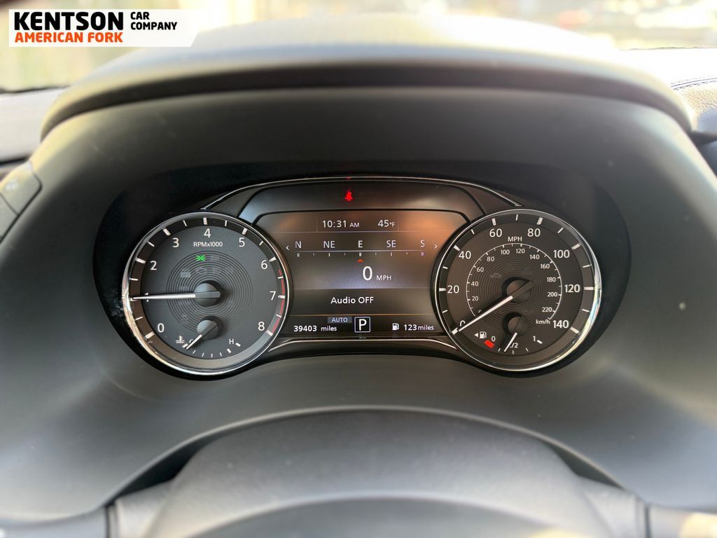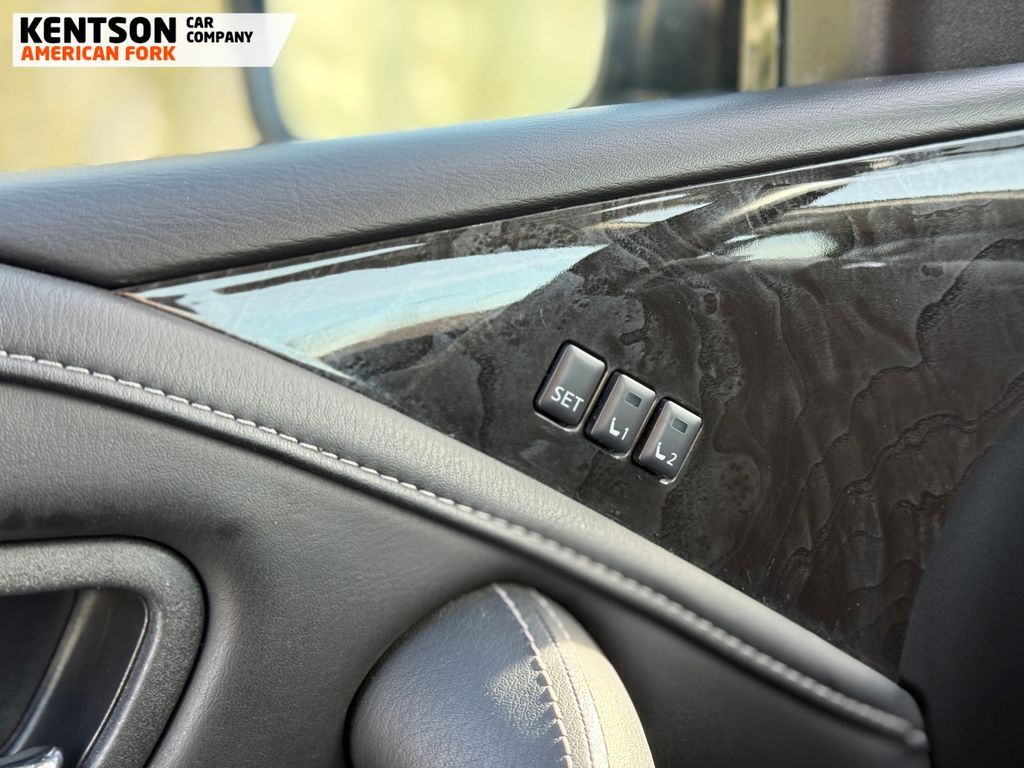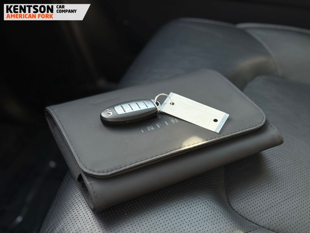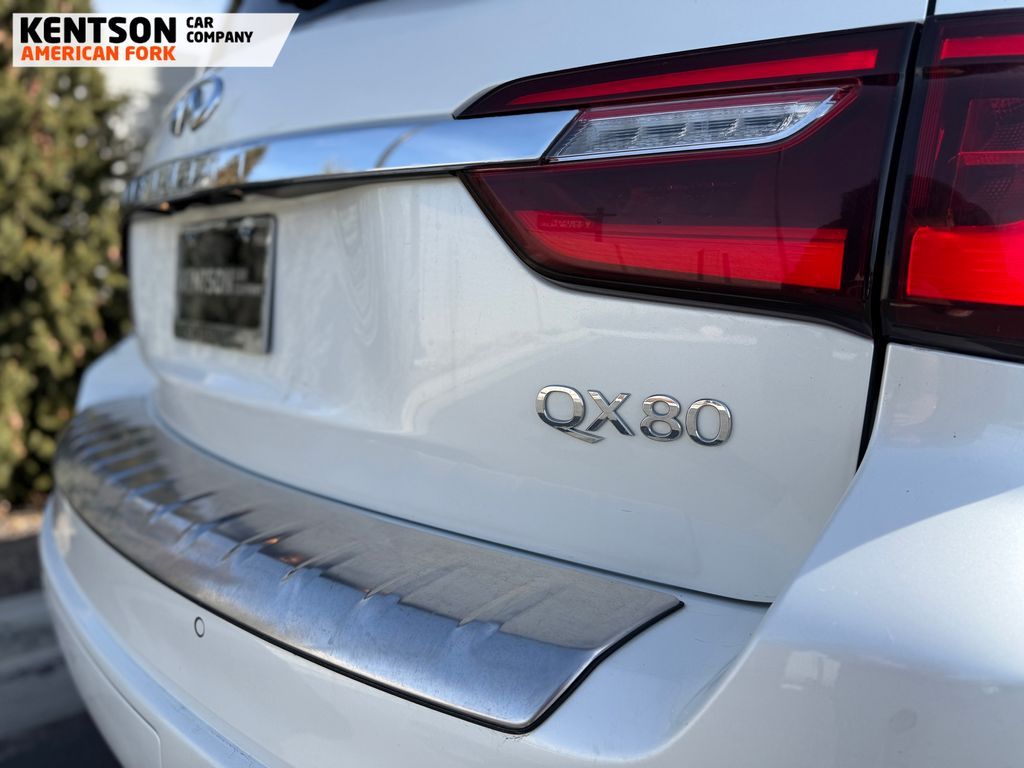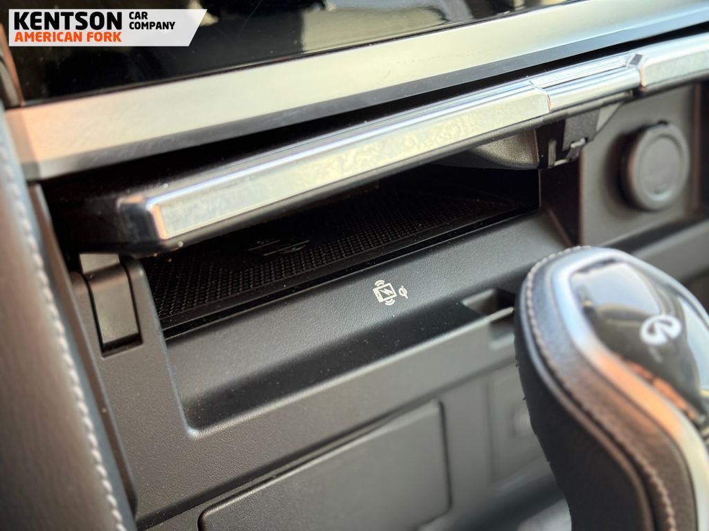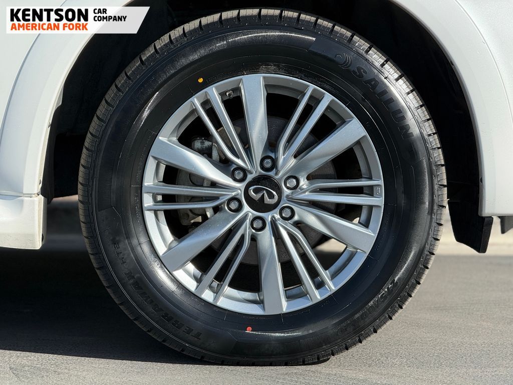 13 Speakers, 2.937 Axle Ratio, 20'' Aluminum Alloy Wheels, 3rd row seats: bench, 4-Wheel Disc Brakes, ABS brakes, Air Conditioning, Alloy wheels, AM/FM radio: SiriusXM, Anti-whiplash front head restraints, Apple CarPlay/Android Auto, Auto High-beam Headlights, Auto tilt-away steering wheel, Auto-dimming door mirrors, Auto-dimming Rear-View mirror, Auto-leveling suspension, Automatic temperature control, Brake assist, Bumpers: body-color, Compass, Delay-off headlights, Driver door bin, Driver vanity mirror, Dual front impact airbags, Dual front side impact airbags, Electronic Stability Control, Emergency communication system: INFINITI InTouch, Four wheel independent suspension, Front anti-roll bar, Front Bucket Seats, Front Center Armrest, Front dual zone A/C, Front fog lights, Front reading lights, Fully automatic headlights, Garage door transmitter: HomeLink, Heated door mirrors, Heated Front Bucket Seats, Heated front seats, Heated steering wheel, Illuminated entry, Leather Shift Knob, Leather steering wheel, Leather-Appointed Seats, Literature Kit, Low tire pressure warning, Memory seat, Navigation system: INFINITI InTouch Navigation, Occupant sensing airbag, Outside temperature display, Overhead airbag, Overhead console, Panic alarm, Passenger door bin, Passenger vanity mirror, Power door mirrors, Power driver seat, Power Liftgate, Power moonroof, Power passenger seat, Power steering, Power windows, Radio data system, Radio: Bose Premium Audio System w/13 Speakers, Rain sensing wipers, Rear air conditioning, Rear anti-roll bar, Rear reading lights, Rear seat center armrest, Rear window defroster, Rear window wiper, Reclining 3rd row seat, Remote keyless entry, Security system, Speed control, Speed-sensing steering, Split folding rear seat, Spoiler, Steering wheel memory, Steering wheel mounted audio controls, Tachometer, Telescoping steering wheel, Tilt steering wheel, Traction control, Trip computer, Turn signal indicator mirrors, Variably intermittent wipers, and Voltmeter.