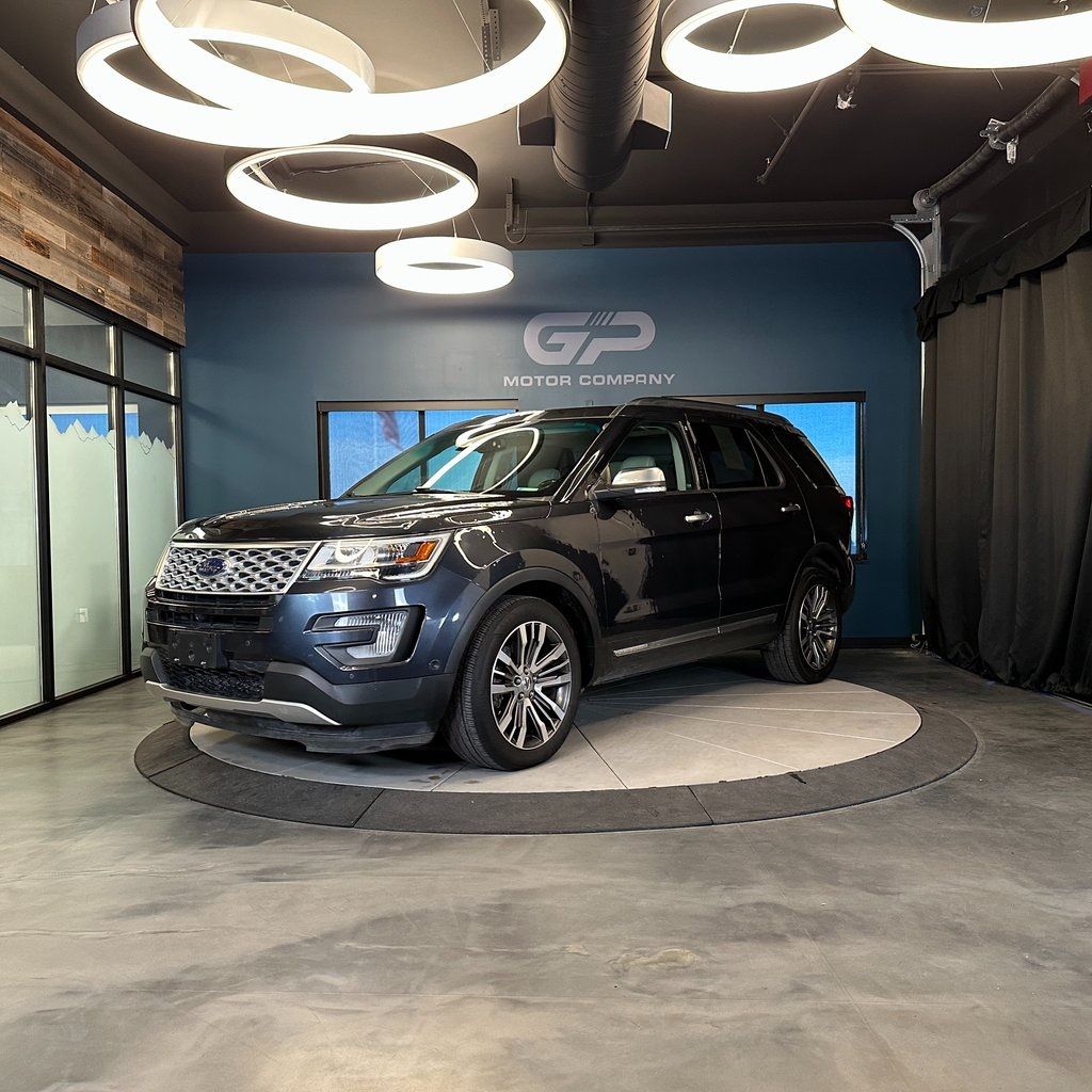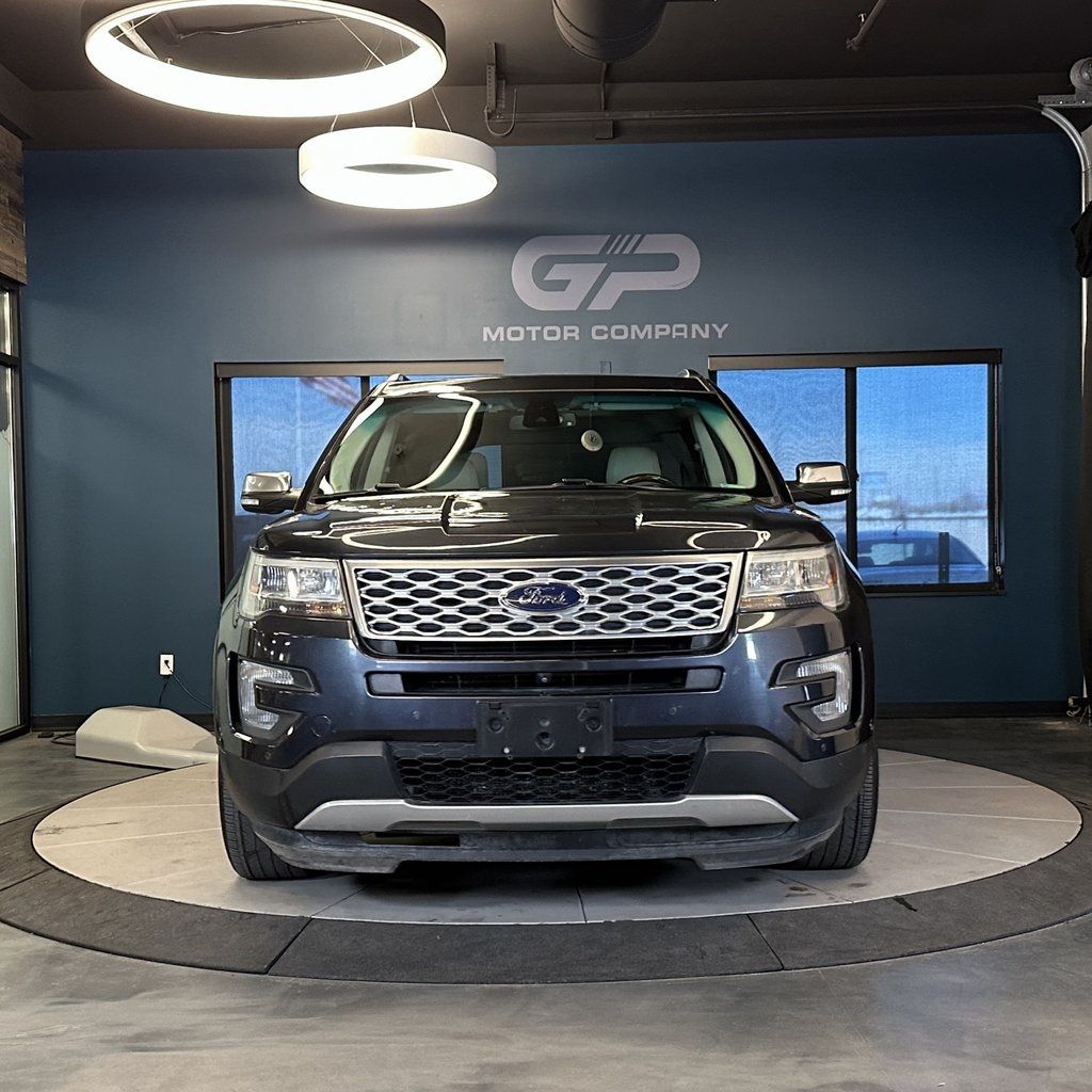 No accident history, 4WD, Platinum trim with heated front and rear seats, power moonroof, power liftgate, front dual zone A/C, heated steering wheel, and much more! 2017 Ford Explorer Platinum 4WD with branded title from hail. 6-Speed Automatic with Select-Shift 3.5L V6