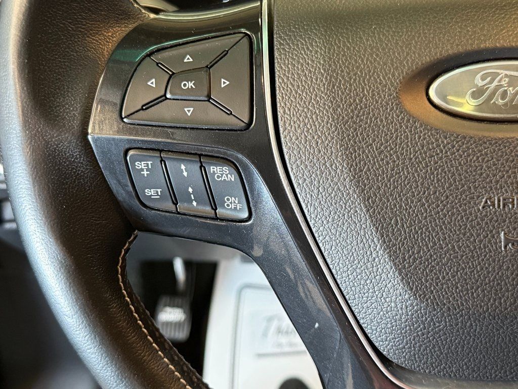 4WD, 12 Speakers, 3rd row seats: split-bench, 4-Wheel Disc Brakes, ABS brakes, Air Conditioning, Auto High-beam Headlights, Automatic temperature control, Backup Camera, Brake assist, Dual front impact airbags, Dual front side impact airbags, Electronic Stability Control, Four wheel independent suspension, Front anti-roll bar, Front dual zone A/C, Front fog lights, Garage door transmitter, Heated door mirrors, Heated front seats, Heated rear seats, Heated steering wheel, Knee airbag, Lane Departure Warning System, Memory seat, Navigation System, Occupant sensing airbag, Overhead airbag, Panic alarm, Pedal memory, Power driver seat, Power Liftgate, Power moonroof, Power steering, Power windows, Rear air conditioning, Rear anti-roll bar, Rear window defroster, Remote keyless entry, Security system, Speed control, Speed-sensing steering, Steering wheel memory, Steering wheel mounted audio controls, SYNC 3 Communications & Entertainment System, TPMS Sensors, Traction control, Ventilated front seats, Wheels: 20'' Bright Machined Face Aluminum.