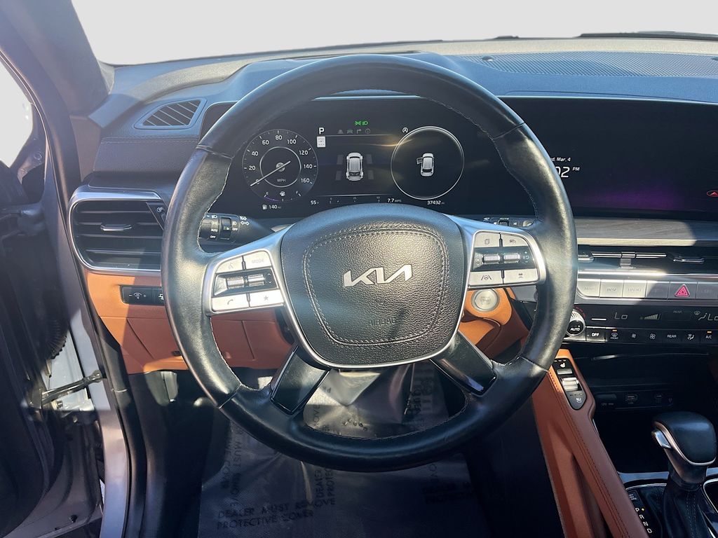 Explore the 2023 Kia Telluride SX Prestige X-Pro AWD at AutoSavvy Windsor, a sophisticated blend of luxury and rugged performance. Finished in an eye-catching Everlasting Silver, this SUV is powered by a robust LAMBDA II 3.8L V-6 engine, offering an impressive 291 horsepower. The interior is adorned with premium Nappa leather upholstery and features a suite of advanced technologies including a 12.3-inch touchscreen with Apple CarPlay and Android Auto integration, a head-up display, and a Harman/Kardon audio system. With only 37,422 miles, this vehicle promises a dynamic and comfortable driving experience, whether you're navigating city streets or embarking on a cross-country adventure. The current status of the title is branded, reflecting AutoSavvy Windsor’s commitment to transparency and quality. This Telluride is Savvy Certified, having passed a comprehensive inspection to meet high safety and performance standards. Enjoy peace of mind with our 4-month/4,500 Mile Warranty, ensuring that your investment is protected. Equipped with a suite of safety features like adaptive cruise control, blind spot monitoring, and automatic emergency braking, this SUV is designed to keep you and your passengers safe on every journey. Visit AutoSavvy Windsor today to discover why the 2023 Kia Telluride SX Prestige X-Pro AWD is the ultimate choice for those seeking style, technology, and adventure.