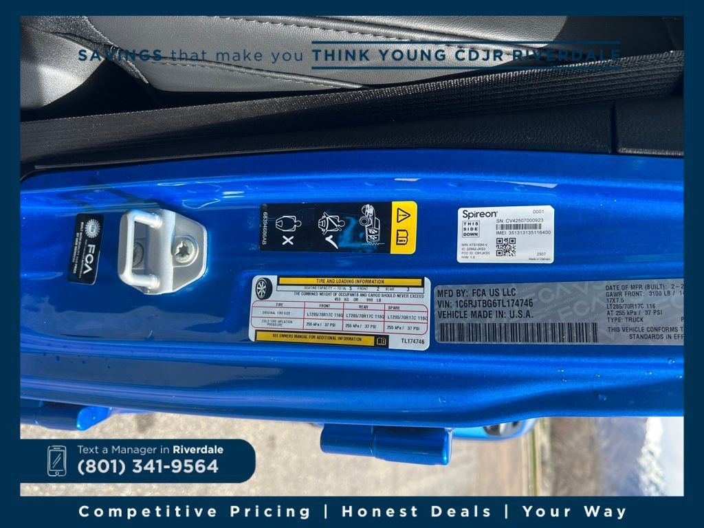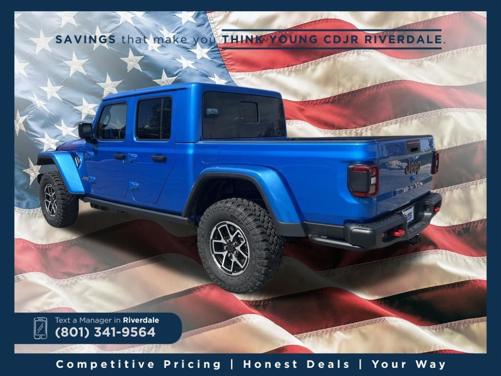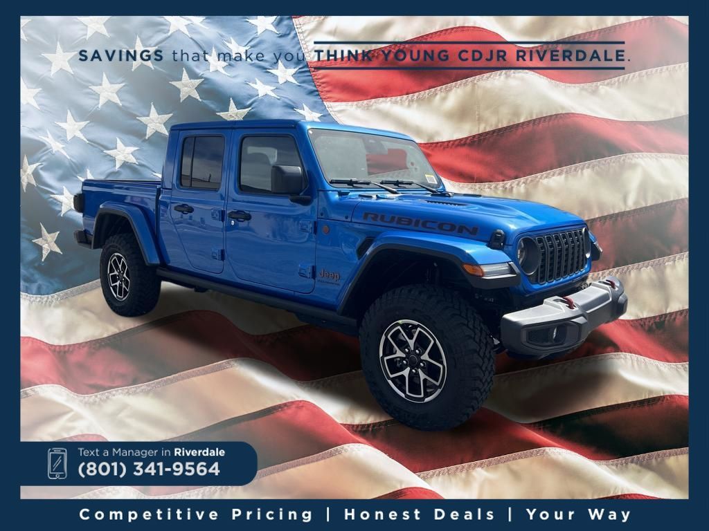 2026 Jeep Gladiator Rubicon Hydro Blue Pearlcoat 3.6L V6 24V VVT 8-Speed Automatic 4WD Price includes: $2,000 Neighborhood Discount: Neighborhood Discount applies to the state of Utah, Uintah County, and Evanston, WY. See dealership for complete details. $2,000 Finance Discount: Must finance through Young Chrysler Jeep Dodge Ram of Layton or one of their approved lenders to qualify.