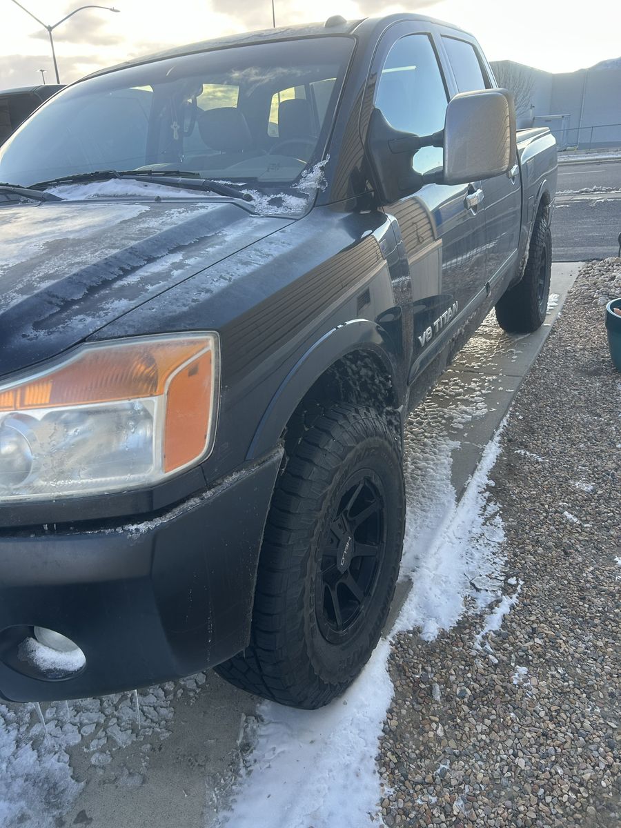 Selling my 2012 Nissan Titan $8200 obo. This truck is fully loaded leather heated seats, DVD player, new tires after market rims comes with leveling kit. The only reason I’m selling it is because I bought a new 3/4 ton dodge. This has been an awesome truck the paint is a little faded and the passenger rear wheel speed sensor is out but easy to replace I just haven’t gotten around to putting it in. It hasn’t affected anything just makes the ABS light stay on. The new Sensor is included as well