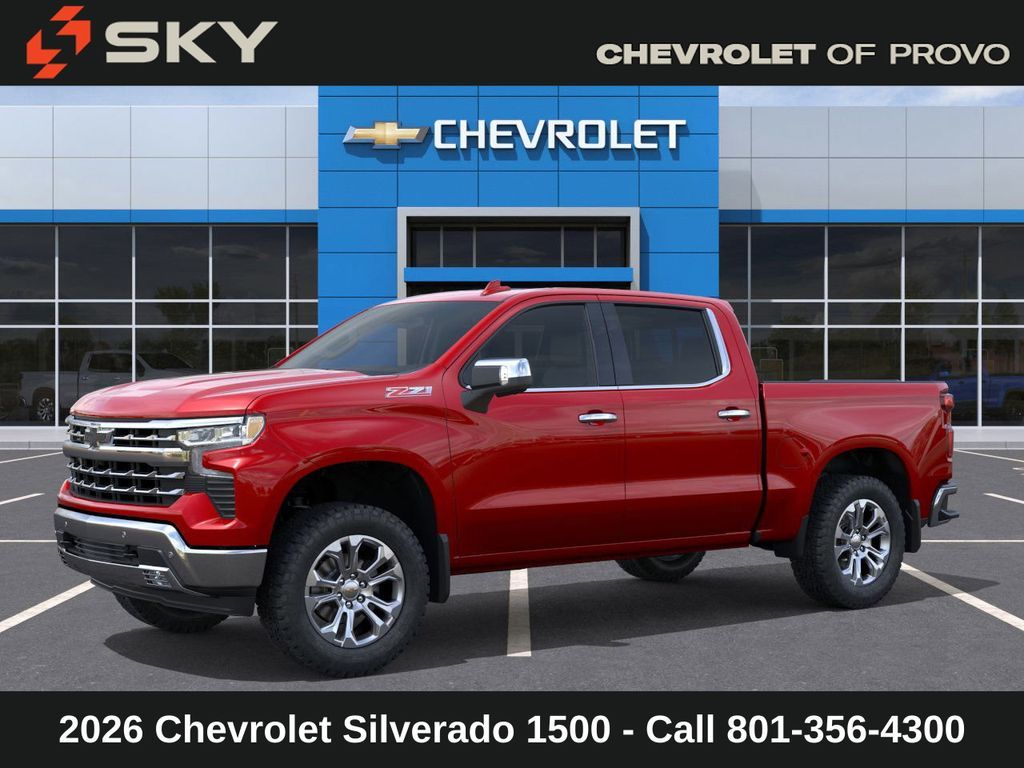 Experience the new Chevrolet Silverado 1500, available now at Sky Chevrolet of Provo! With bold design, advanced technology, and dependable performance, Chevrolet makes every mile more exciting. From Utah Valley’s city streets to mountain canyon drives, the Silverado 1500 is built to handle it all with confidence. Call 801-356-4300 today to schedule your test drive and see what makes it stand out! Radiant Red Tintcoat 2026 Chevrolet Silverado 1500 LTZ 4WD 10-Speed Automatic EcoTec3 5.3L V8 10-Speed Automatic, 4WD, Gideon/Very Dark Atmosphere Leather. Price includes: $4250 - Chevrolet Consumer Cash Program $500 - Chevrolet Bonus Cash - Price includes $1,500 Trade-In Allowance for customers trading a 2019 or newer passenger car or truck with under 80,000 miles toward a new 2025–2026 Chevrolet. Branded or salvage title vehicles do not qualify. Some restrictions apply. See dealer for details.
