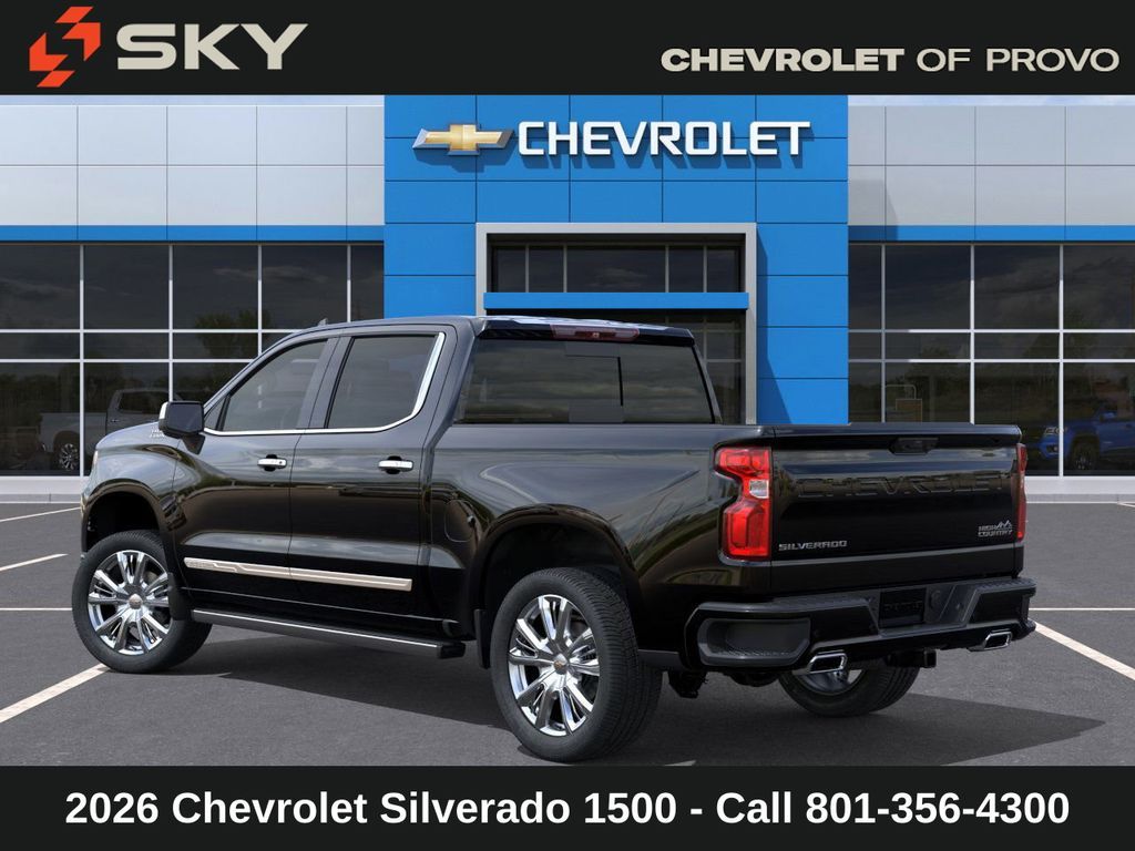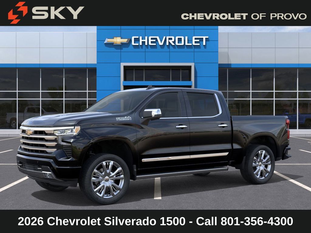 Experience the new Chevrolet Silverado 1500, available now at Sky Chevrolet of Provo! With bold design, advanced technology, and dependable performance, Chevrolet makes every mile more exciting. From Utah Valley’s city streets to mountain canyon drives, the Silverado 1500 is built to handle it all with confidence. Call 801-356-4300 today to schedule your test drive and see what makes it stand out! Black 2026 Chevrolet Silverado 1500 High Country 4WD 10-Speed Automatic EcoTec3 6.2L V8 10-Speed Automatic, 4WD, Black Leather. Price includes: $1250 - Chevrolet Consumer Cash Program $750 - Chevrolet Bonus Cash - Price includes $1,500 Trade-In Allowance for customers trading a 2019 or newer passenger car or truck with under 80,000 miles toward a new 2025–2026 Chevrolet. Branded or salvage title vehicles do not qualify. Some restrictions apply. See dealer for details.