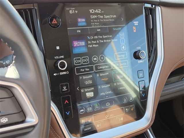 Welcome to Findlay Subaru in St George on the Savings Side of the Freeway. Please contact us at the phone number listed above for any questions that you might have and to check the availability of this vehicle. This Subaru Outback is equipped with the following options:Standard Model, Subaru Certified Pre-Owned Certified, 12 Speakers, 3.90 Axle Ratio, 4-Wheel Disc Brakes, ABS brakes, Air Conditioning, Alloy wheels, AM/FM radio: SiriusXM, Auto High-beam Headlights, Auto-dimming Rear-View mirror, Automatic temperature control, Brake assist, Bumpers: body-color, Compass, Driver door bin, Driver vanity mirror, Dual front impact airbags, Dual front side impact airbags, Electronic Stability Control, Emergency communication system: STARLINK Safety Plus (3-year free trial), Exterior Parking Camera Rear, Four wheel independent suspension, Front anti-roll bar, Front Bucket Seats, Front Center Armrest w/Storage, Front dual zone A/C, Front fog lights, Front reading lights, Fully automatic headlights, Garage door transmitter: HomeLink, harman/kardon® Speakers, Heated & Ventilated Front Bucket Seats, Heated door mirrors, Heated front seats, Heated rear seats, Heated steering wheel, HVAC memory, Illuminated entry, Knee airbag, Leather Shift Knob, Leather steering wheel, Low tire pressure warning, Memory seat, Navigation System, Occupant sensing airbag, Outside temperature display, Overhead airbag, Overhead console, Panic alarm, Passenger door bin, Passenger vanity mirror, Perforated Nappa Leather-Trimmed Upholstery, Power door mirrors, Power driver seat, Power Liftgate, Power moonroof, Power passenger seat, Power steering, Power windows, Radio: Subaru STARLINK 11.6" Multimedia Nav System, Rear anti-roll bar, Rear Seat Back Protector, Rear seat center armrest, Rear window defroster, Rear window wiper, Remote CD player, Remote keyless entry, Roof rack, Security system, Speed control, Speed-sensing steering, Splash Guards, Split folding rear seat, Spoiler, Steering wheel mounted audio controls, Steering Wheel Paddle Shift Control Switches, Tachometer, Telescoping steering wheel, Tilt steering wheel, Traction control, Trip computer, Turn signal indicator mirrors, Variably intermittent wipers, Ventilated front seats, and Wheels: 18" x 7J Black Aluminum Alloy.
