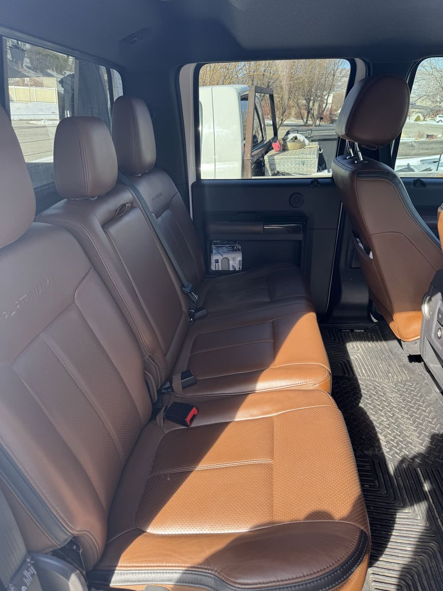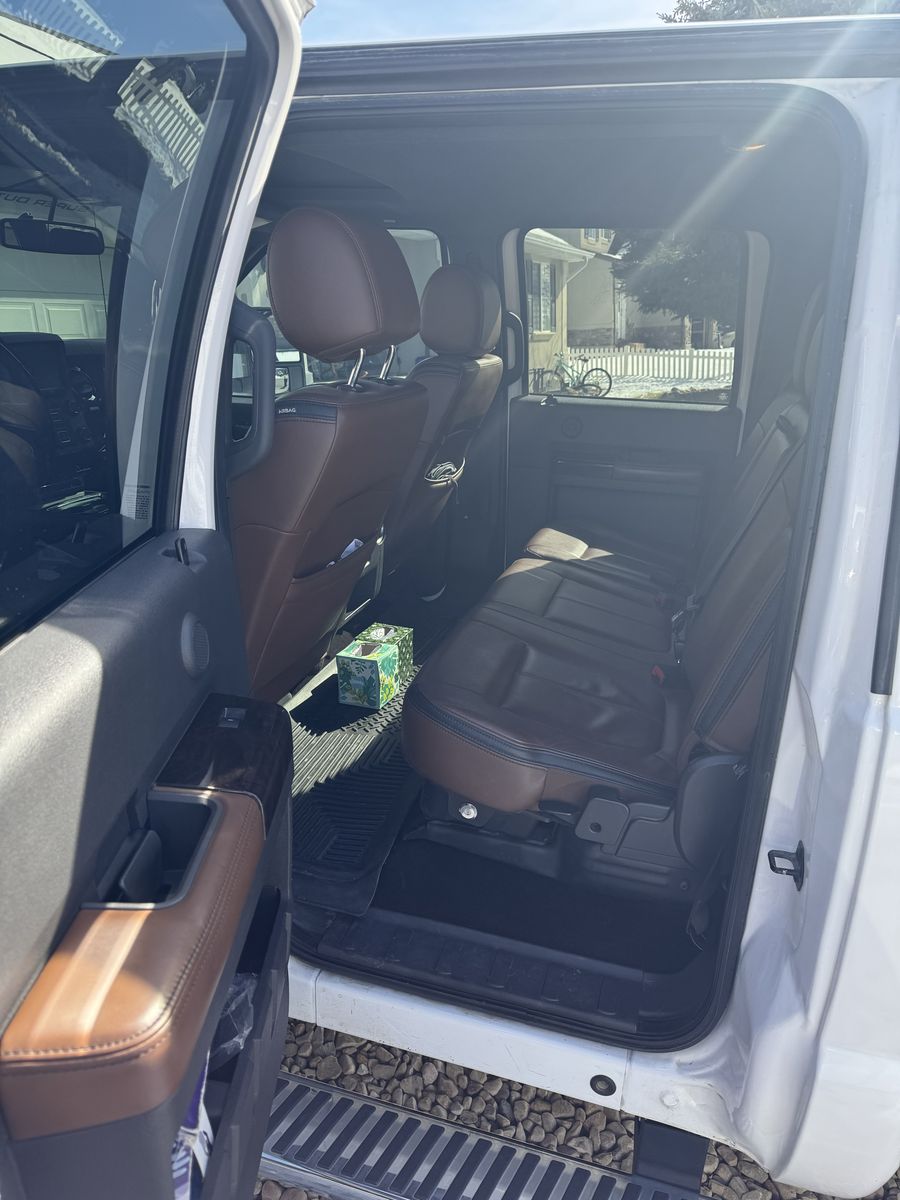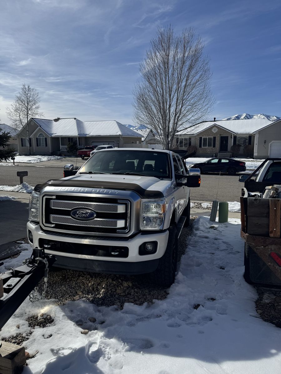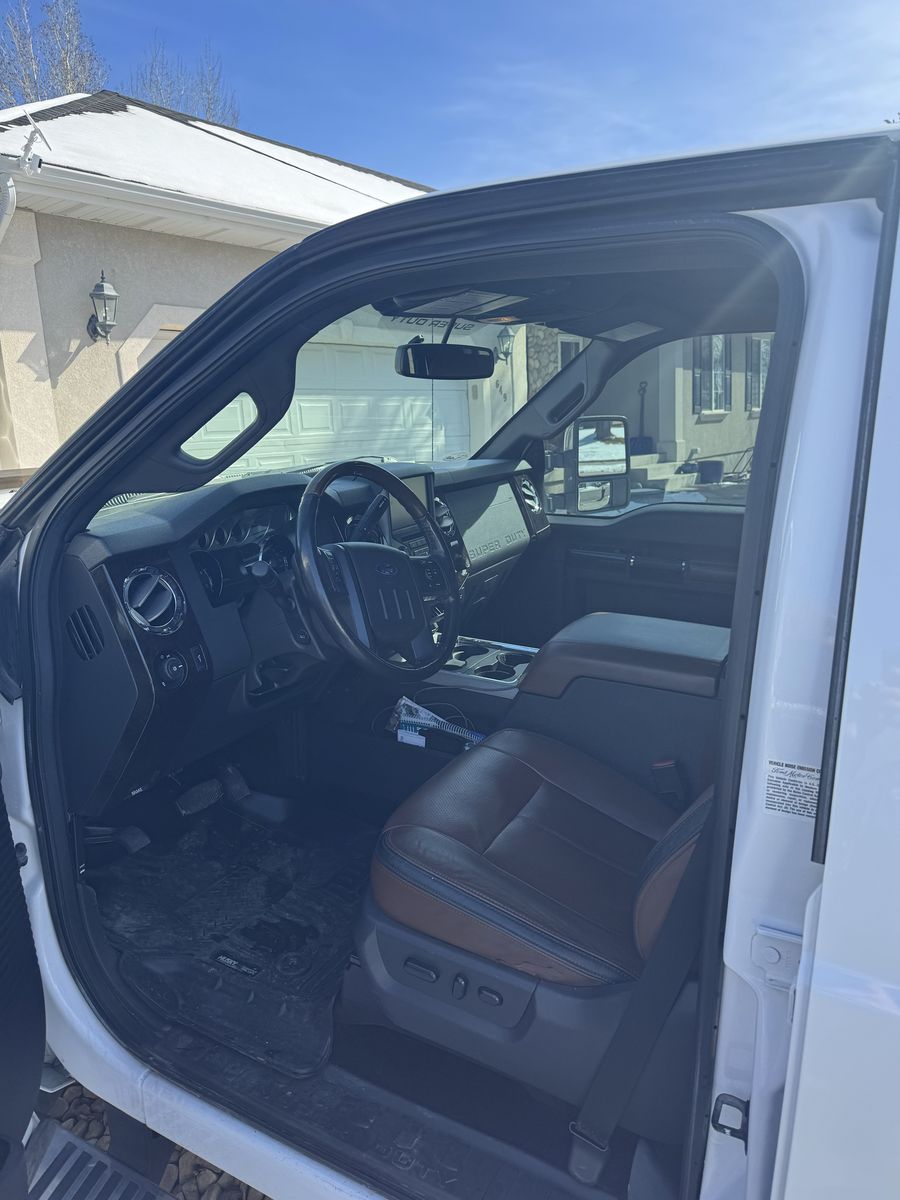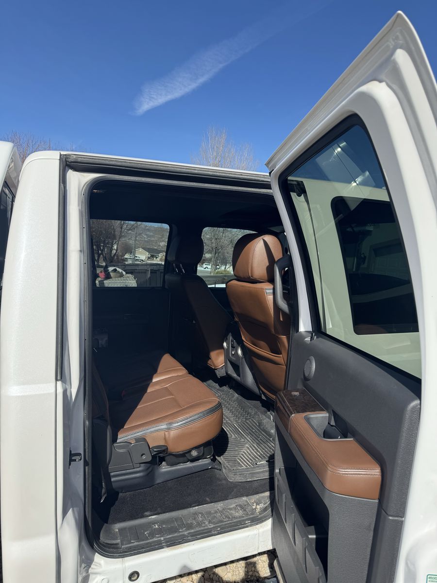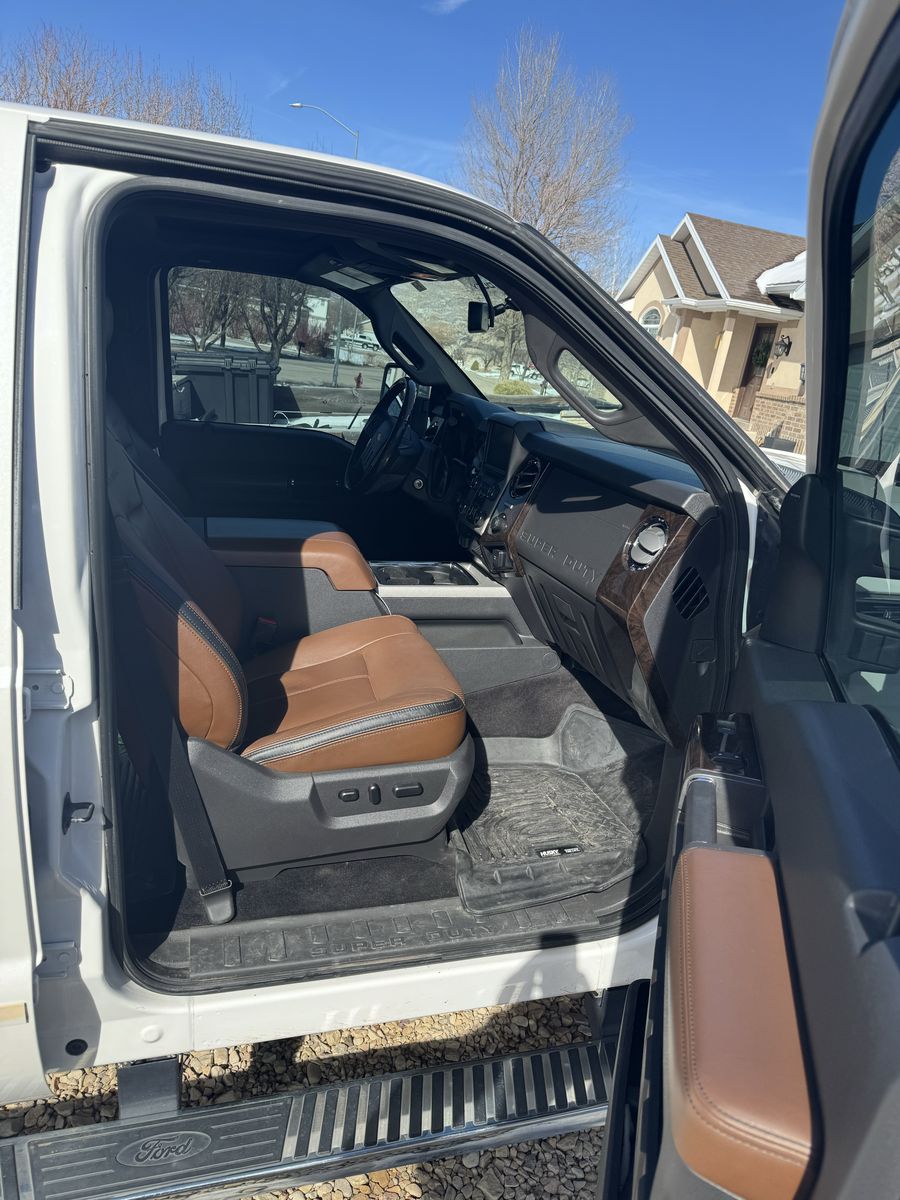 2014 F350 Platinum 6.7 powerstroke 4x4 with only 78,800 miles. Features include, bed liner and bed mat, factory fith wheel/gooseneck puck system, town package with integrated brake controller, tailgate step, sunroof, heated and cooled seats, power front seats, beautiful Chestnut brown interior, back up camera, heated steering wheel, basically almost every option available at the time. This has been a super reliable, trouble free truck for us. Only selling to upgrade to a newer one. Truck also has a 2.5" bds lift with extended radius arms, adjustable track bar, and fox shocks with fuel matte black and bronze wheels with good 35" Toyo tires on it, and a 55 gallon Titan Fuel tank. Also has a fiberglass shell with side access windows on both sides. Best style of shell I have ever had! I would keep it if it would fit the newer trucks!