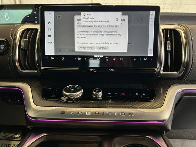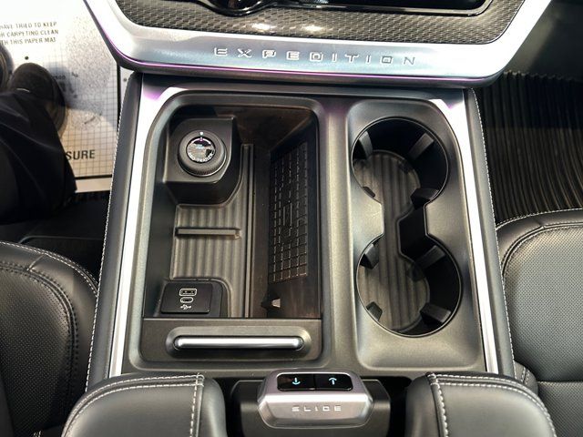 Navigation System,Driver's Package,Equipment Group 600A Standard Package,Stealth Appearance Package,Stealth Performance Package,10 Speakers,AM/FM radio: SiriusXM with 360L,Radio data system,Radio: B&O Sound System by Bang & Olufsen,Radio: B&O Unleashed Sound System by Bang & Olufsen,SiriusXM w/360L,Air Conditioning,Automatic temperature control,Front dual zone A/C,Rear air conditioning,Rear window defroster,Memory seat,Pedal memory,Power driver seat,Power steering,Power windows,Remote keyless entry,Steering wheel memory,Steering wheel mounted audio controls,Continuous Control Damping Suspension,Four wheel independent suspension,Speed-sensing steering,Traction control,4-Wheel Disc Brakes,ABS brakes,Dual front impact airbags,Dual front side impact airbags,Emergency communication system: 911 Assist,Front anti-roll bar,Low tire pressure warning,Occupant sensing airbag,Overhead airbag,Rear anti-roll bar,Red Brake Calipers,Power moonroof: Vista Roof,Brake assist,Electronic Stability Control,Exterior Parking Camera Rear,Auto High-beam Headlights,Delay-off headlights,Fully automatic headlights,Panic alarm,Security system,Speed control,Engine Block Heater,Auto-dimming door mirrors,Black Belt Molding,Black Expedition Lettering On Hood,Black Headlamp Bezel w/Ebony Trim Applique,Black Platinum Badge On Tailgate,Bumpers: body-color,Carbon Black Front Bumper/Fascia,Front License Plate Bracket,Heated door mirrors,High Flow Exhaust System,Power door mirrors,Signature Grille Lighting,Spoiler,Turn signal indicator mirrors,Adjustable pedals,Apple CarPlay/Android Auto,Auto-dimming Rear-View mirror,Compass,Driver door bin,Driver vanity mirror,Engine Sound Enhancer,Front reading lights,Garage door transmitter,Genuine wood dashboard insert,Genuine wood door panel insert,Heated & Ventilated Leather Front Captain's Chairs,Heated steering wheel,Illuminated entry,Leather steering wheel,Outside temperature display,Overhead console,Passenger vanity mirror,Rear reading lights,Tachometer,Telescoping steering wheel,Tilt steering wheel,Trip computer,Voltmeter,2nd Row Power-Folding Captain's Chairs,3rd row seats: split-bench,Front Bucket Seats,Front Center Armrest,Heated front seats,Heated rear seats,Power passenger seat,Reclining 3rd row seat,Split folding rear seat,Ventilated front seats,Black Roof Rails,Passenger door bin,Alloy wheels,Wheels: 20 Ebony Bright Machined Aluminum,Wheels: 22 Magnetite Painted Aluminum,Rear Side Windows Laminated Glass,Rain sensing wipers,Rear window wiper,Speed-Sensitive Wipers,Variably intermittent wipers,3.73 Axle Ratio