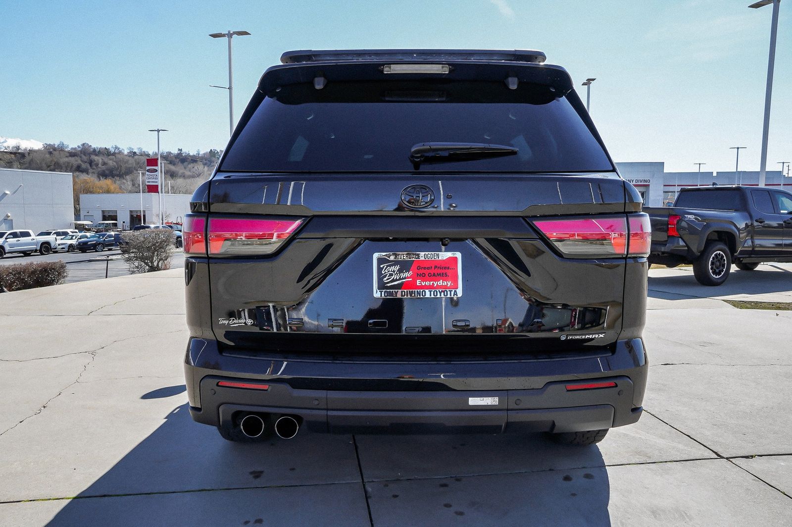 Scores 22 Highway MPG and 19 City MPG! This Toyota Sequoia boasts a Twin Turbo Gas/Electric V-6 3.4 L/210 engine powering this Automatic transmission. TOW TECHNOLOGY PACKAGE -inc: Wireless Trailer Camera System, Wireless Phone Connectivity, Vehicle Stability Control (VSC) Electronic Stability Control (ESC). This Toyota Sequoia Features the Following Options Trunk/Hatch Auto-Latch, Trip Computer, Transmission: 10-Speed Automatic -inc: Electronically Controlled w/intelligence (ECT-i), sequential shift mode, uphill/downhill shift logic and tow/haul driving modes, Transmission w/Driver Selectable Mode and Oil Cooler, Trailer Wiring Harness, Tracker System, Tire Pressure Monitor System (TPMS) Tire Specific Low Tire Pressure Warning, Tailgate/Rear Door Lock Included w/Power Door Locks, Steel Spare Wheel, Splash Guards. Stop By Today Treat yourself- stop by Tony Divino Toyota located at 777 West Riverdale Rd, Riverdale, UT 84405 to make this car yours today! * Estimated Monthly Payment will depend on vehicle make and model and will be determined upon actual vehicle inspection. All payments are estimates. Tax, title, registration and documentation fee ($349) are extra.* While every reasonable effort is made to ensure the accuracy of this information, we are not responsible for any errors or omissions contained on these pages. Please verify any information in question with Tony Divino Toyota.