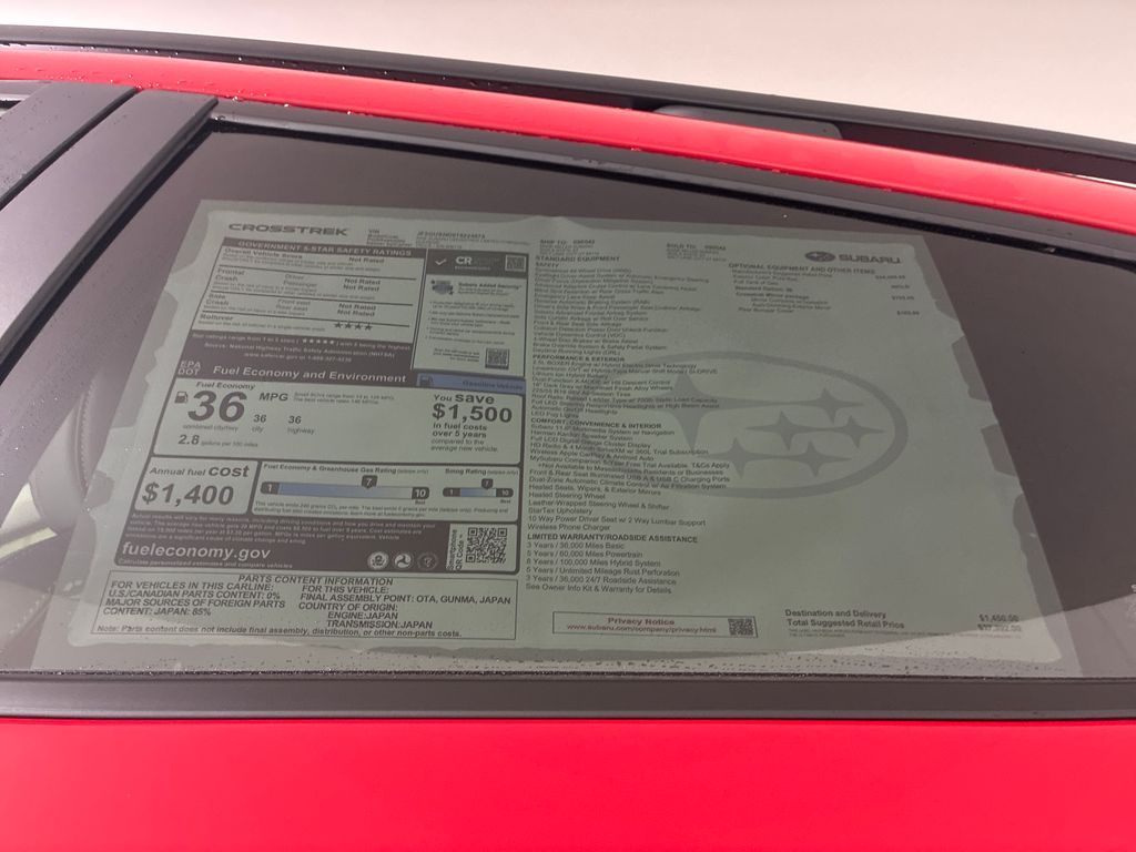Mark Miller Subaru is the leading Subaru dealership in Utah. Our large inventory and dedicated sales teams has made us the go to destination for the Subaru brand in Utah. Our Promise Price is the best way to buy a Subaru in Utah. Come experience the Mark Miller Subaru difference today! ** This 2026 Pure Red Subaru Crosstrek Hybrid Limited AWD is well equipped and includes these features and benefits: Crosstrek Mirror Package (Auto-Dimming Exterior Mirror with Approach Light and Auto-Dimming Mirror with Compass and HomeLink), Standard Model, 2.5L 4-Cylinder DOHC 16V, 10 Speakers, 4-Wheel Disc Brakes, ABS brakes, Air Conditioning, All-Weather Floor Liners, Alloy wheels, AM/FM radio: SiriusXM, Anti-whiplash front head restraints, Auto High-beam Headlights, Automatic temperature control, Brake assist, Bumpers: body-color, Compass, Driver door bin, Driver vanity mirror, Dual front impact airbags, Dual front side impact airbags, Electronic Stability Control, Emergency communication system: MySubaru Companion (5-years free), Exterior Parking Camera Rear, Four wheel independent suspension, Front anti-roll bar, Front Bucket Seats, Front Center Armrest, Front dual zone A/C, Front fog lights, Front reading lights, Fully automatic headlights, harman/kardon® Speakers, Heated door mirrors, Heated Front Bucket Seats, Heated front seats, Heated steering wheel, Illuminated entry, Knee airbag, Leather Shift Knob, Leather steering wheel, Low tire pressure warning, Navigation System, Occupant sensing airbag, Outside temperature display, Overhead airbag, Overhead console, Panic alarm, Passenger door bin, Passenger vanity mirror, Perforated StarTex Upholstery, Power door mirrors, Power driver seat, Power steering, Power windows, Radio data system, Radio: Subaru 11.6'' Multimedia Navigation System, Rear anti-roll bar, Rear Bumper Cover, Rear seat center armrest, Rear side impact airbag, Rear window defroste