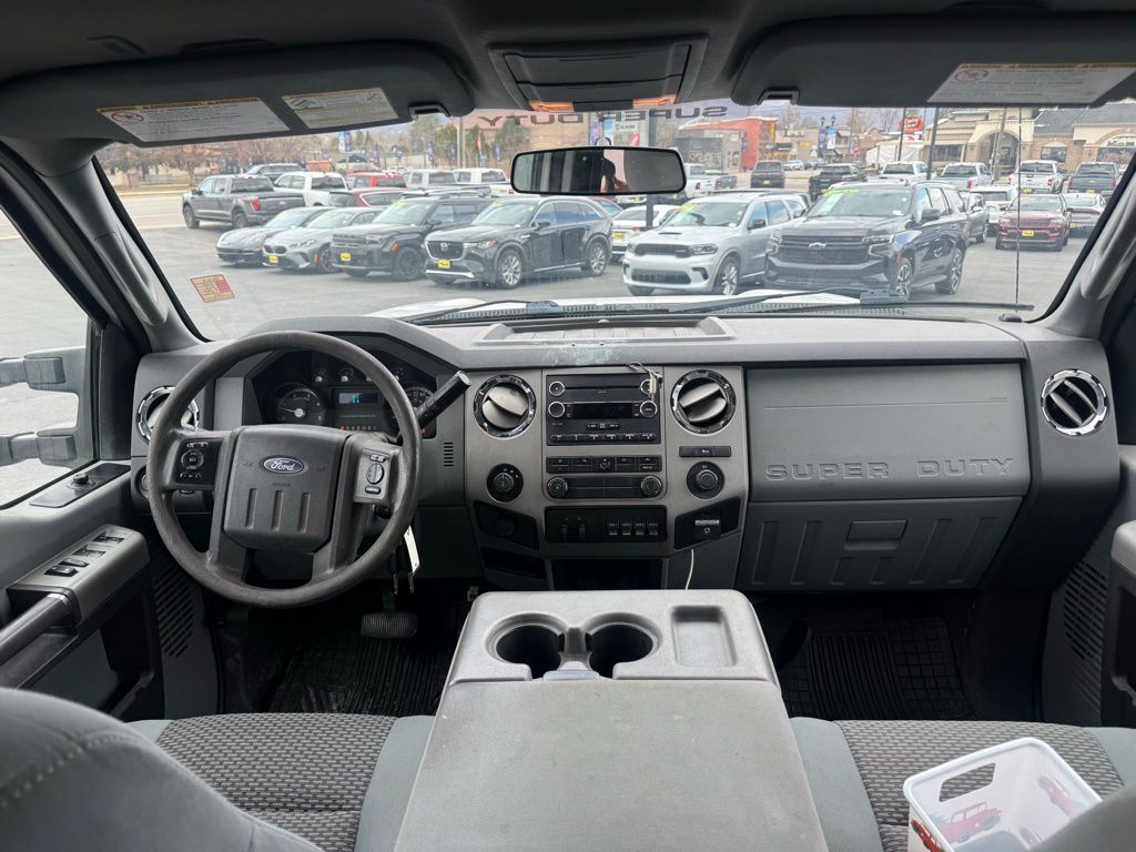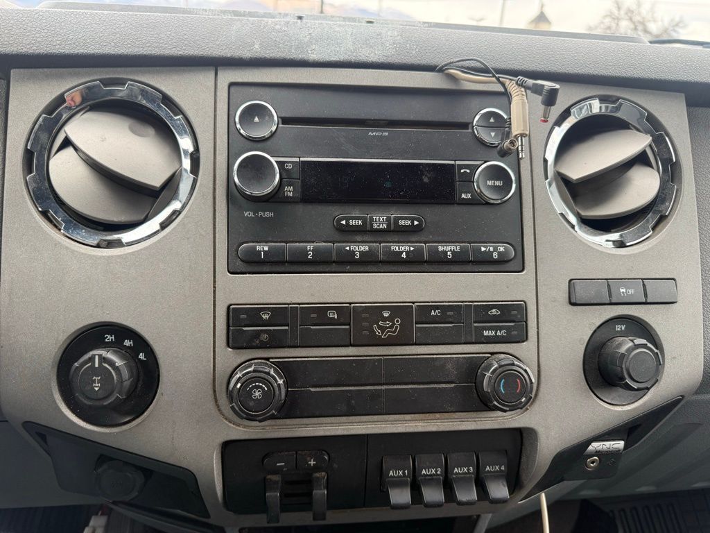 4WD, 4 Speakers, 4-Wheel Disc Brakes, 4x4 Electric-Shift-On-The-Fly, 5th Wheel/Gooseneck Hitch Prep Package, 6-Way Power Driver's Seat, ABS brakes, Air Conditioning, Alloy wheels, AM/FM radio, Auto-Lamp/Rainlamp, Auto-Lock/Auto-Unlock, Bodyside Molding, Brake assist, Bumpers: chrome, CD player, Cloth 40/20/40 Split Bench Seat, Compass, Driver door bin, Driver vanity mirror, Dual front impact airbags, Dual front side impact airbags, Electronic Stability Control, Engine Block Heater, Extra Heavy Duty 200-Amp Alternator, Front anti-roll bar, Front Center Armrest w/Storage, Front reading lights, GVWR: 10,800 lb Payload Package, Heated door mirrors, Illuminated entry, Low tire pressure warning, Order Code 613A, Outside temperature display, Overhead airbag, Overhead console, Panic alarm, Passenger door bin, Passenger vanity mirror, Power Adjustable Pedals, Power door mirrors, Power steering, Power windows, Radio data system, Radio: AM/FM Stereo/Single CD/MP3 Player, Rear reading lights, Rear seat center armrest, Rear step bumper, Remote keyless entry, SecuriCode Keyless Entry Keypad (Driver Side), Security system, Snow Plow Prep Package, Speed control, Split folding rear seat, Steering wheel mounted audio controls, Tachometer, Telescoping steering wheel, Tilt steering wheel, Traction control, Turn signal indicator mirrors, Upfitter Switches (4), Variably intermittent wipers, Wheels: 17'' 6-Spoke Cast Aluminum (4), XLT Interior Package, 4WD.