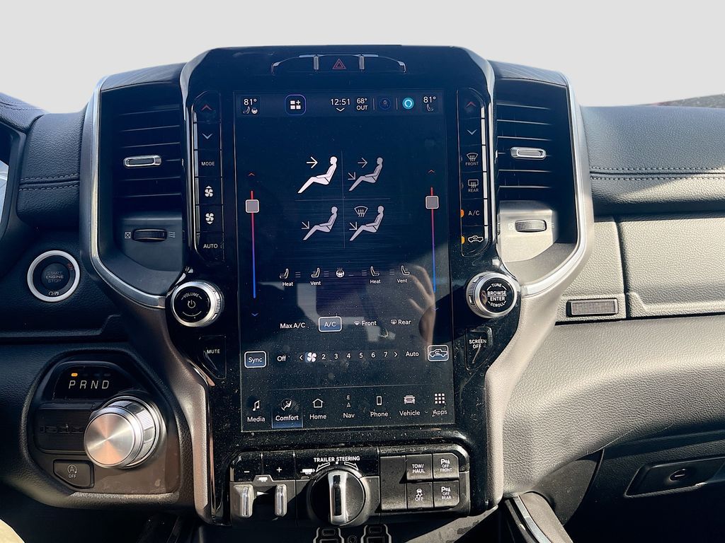 Experience the ultimate blend of luxury and performance with the 2023 RAM 1500 Laramie Crew Cab, now available at AutoSavvy Las Vegas. This striking pickup, finished in a sleek Diamond Black Crystal Pearlcoat, is powered by a robust HEMI 5.7L V-8 engine, offering a remarkable 395 horsepower and equipped with cylinder deactivation for enhanced fuel efficiency. With only 38,115 miles, this vehicle promises longevity and reliability. The interior is crafted for comfort and convenience, featuring premium leather upholstery, heated and ventilated front seats, and a state-of-the-art 12-inch touchscreen display with Apple CarPlay and Android Auto integration. The Laramie also boasts advanced safety features including Blind Spot Monitoring and Forward Collision Warning, ensuring peace of mind on every journey. The current status of the title is branded, reflecting AutoSavvy's dedication to transparency and integrity. As a Savvy Certified vehicle, this RAM 1500 Laramie comes with the assurance of our 4-month/4,500 Mile Warranty, providing added security for your investment. At AutoSavvy Las Vegas, we pride ourselves on offering high-quality vehicles and exceptional customer service. Whether you're navigating city streets or exploring rugged terrains, the 2023 RAM 1500 Laramie is designed to elevate your driving experience. Visit us today to explore this remarkable truck and discover why AutoSavvy is the smart choice for your next vehicle.