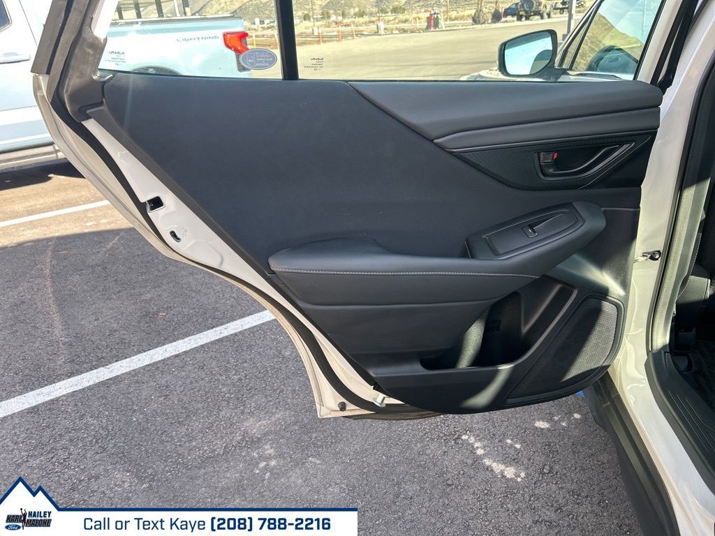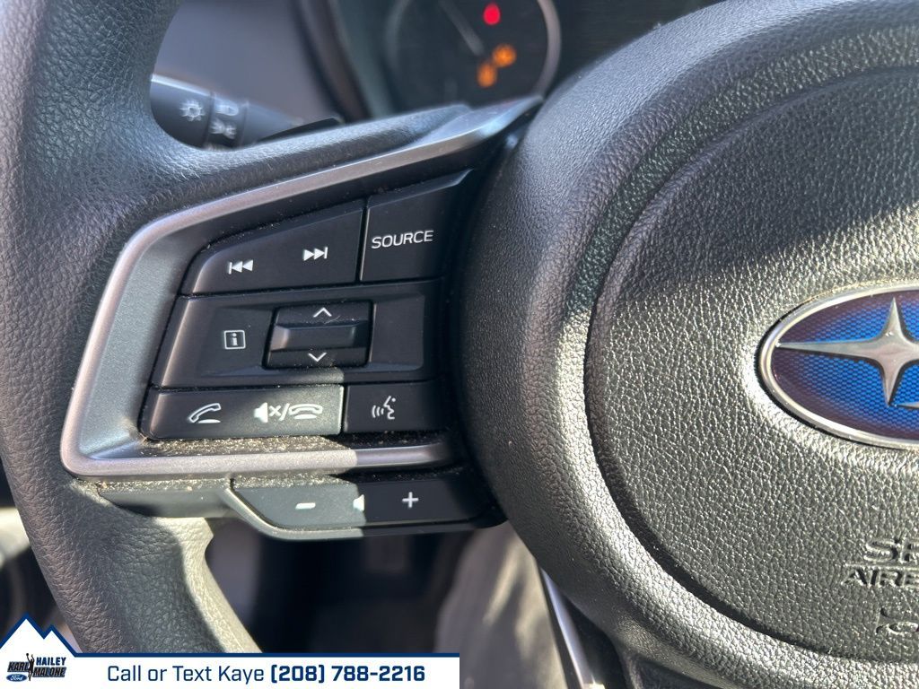3.90 Axle Ratio, 4 Speakers, 4-Wheel Disc Brakes, ABS brakes, Air Conditioning, Alloy wheels, AM/FM radio: SiriusXM, Auto High-beam Headlights, Automatic temperature control, Brake assist, Bumpers: body-color, Cloth Upholstery, Driver door bin, Driver vanity mirror, Dual front impact airbags, Dual front side impact airbags, Electronic Stability Control, Exterior Parking Camera Rear, Four wheel independent suspension, Front anti-roll bar, Front Bucket Seats, Front Center Armrest w/Storage, Front fog lights, Front reading lights, Fully automatic headlights, Illuminated entry, Knee airbag, Low tire pressure warning, Occupant sensing airbag, Outside temperature display, Overhead airbag, Overhead console, Panic alarm, Passenger door bin, Passenger vanity mirror, Power door mirrors, Power steering, Power windows, Radio: Subaru STARLINK Dual 7.0'' Multimedia System, Rear anti-roll bar, Rear seat center armrest, Rear window defroster, Rear window wiper, Remote keyless entry, Roof rack, Security system, Speed control, Speed-sensing steering, Split folding rear seat, Spoiler, Standard Model, STARLINK/Apple CarPlay/Android Auto, Steering wheel mounted audio controls, Tachometer, Telescoping steering wheel, Tilt steering wheel, Traction control, Trip computer, Variably intermittent wipers, Wheels: 17'' x 7J Black Aluminum-Alloy.