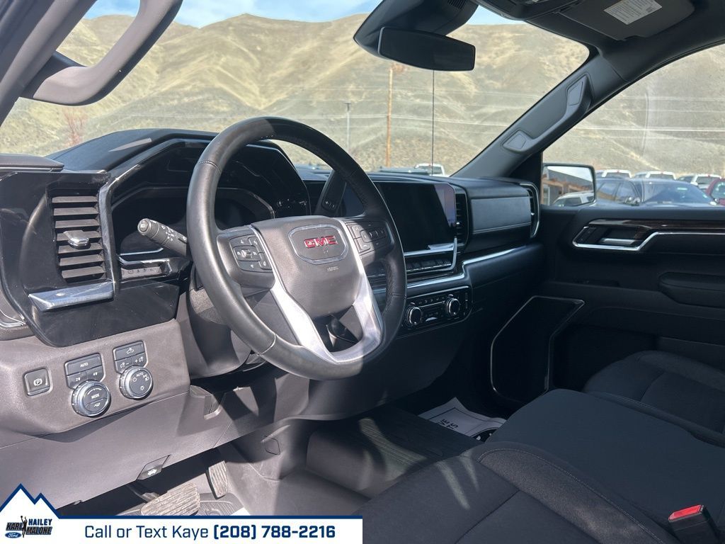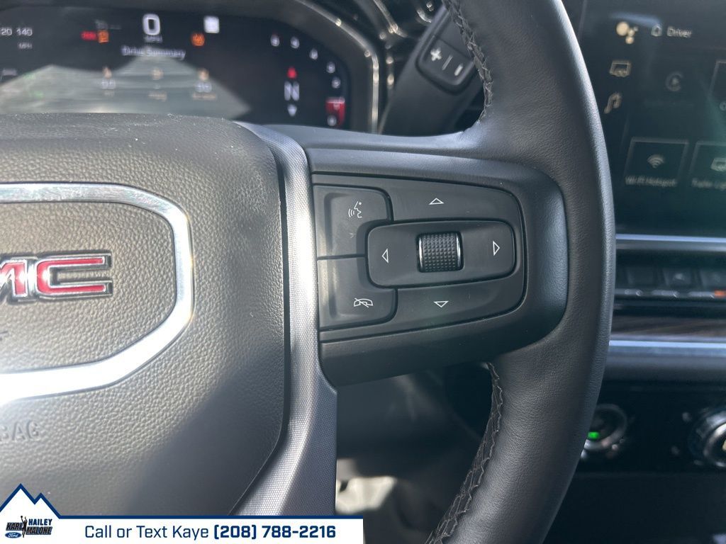 10-Speed Automatic, 4WD, Black Cloth, 10-Way Power Driver Seat Adjuster w/Lumbar, 120-Volt Bed Mounted Power Outlet, 120-Volt Instrument Panel Power Outlet, 170 Amp Alternator, 2 Charge/Data USB Ports, 2 Type-C Charge-Only Rear USB Ports, 220 Amp Alternator, 4-Way Manual Passenger Seat Adjuster, 4-Wheel Disc Brakes, 6 Speakers, 6-Speaker Audio System Feature, ABS brakes, Air Conditioning, All-Weather Floor Liner (LPO), Alloy wheels, AM/FM radio, Apple CarPlay/Android Auto, Auto High-beam Headlights, Auto-Locking Rear Differential, Automatic Emergency Braking, Automatic temperature control, Auxiliary External Transmission Oil Cooler, Brake assist, Buckle to Drive, Bumpers: chrome, Chrome Header w/Medium Silver Grille Insert Bars, Cloth Seat Trim, Color-Keyed Carpeting Floor Covering, Compass, Deep-Tinted Glass, Delay-off headlights, Driver door bin, Driver vanity mirror, Dual front impact airbags, Dual front side impact airbags, Dual-Zone Automatic Climate Control, Electric Rear-Window Defogger, Electrical Steering Column Lock, Electronic Stability Control, Emergency communication system: OnStar and GMC connected services capable, External Engine Oil Cooling, Following Distance Indicator, Forward Collision Alert, Front 40/20/40 Split-Bench Seat, Front anti-roll bar, Front Center Armrest w/Storage, Front dual zone A/C, Front Frame-Mounted Black Recovery Hooks, Front License Plate Kit, Front Pedestrian Braking, Front reading lights, Front Rubberized-Vinyl Floor Mats, Front wheel independent suspension, Fully automatic headlights, GMC Connected Access Capable, HD Rear Vision Camera, Heated door mirrors, Heated Driver & Front Outboard Passenger Seating, Heated front seats, Heated steering wheel, Hitch Guidance, Illuminated entry, IntelliBeam Automatic High Beam On/Off, Keyless Open & Start, Lane Keep Assist w/Lane Departure Warning, LED Cargo Area Lighting, Low tire pressure warning, Manual Tilt-Wheel & Telescoping Steering Column, Navigation System, Not Equipped w/Functional Cab & Bed Power Outlets, Not Equipped w/Steering Column Lock, Occupant sensing airbag, OnStar & GMC Connected Services Capable, Outside temperature display, Overhead airbag, Overhead console, Panic alarm, Passenger door bin, Passenger vanity mirror, Power Door Locks, Power door mirrors, Power driver seat, Power Front Windows w/Driver Express Up/Down, Power Front Windows w/Passenger Express Down, Power Rear Windows w/Express Down, Power steering, Power windows, Preferred Equipment Group 3SA, Premium audio system: GMC Infotainment System, Push Button Start, Radio data system, Radio: Premium GMC Infotainment Audio System, Rear reading lights, Rear Rubberized-Vinyl Floor Mats, Rear step bumper, Rear window defroster, Remote keyless entry, Remote Start Package, Remote Vehicle Starter System, Security system, SiriusXM w/360L, SLE Convenience Package, SLE Value Package, Speed control, Speed-sensing steering, Split folding rear seat, Standard Suspension Package, Steering Wheel Audio Controls, Steering wheel mounted audio controls, Tachometer, Telescoping steering wheel, Theft Deterrent System (Unauthorized Entry), Tilt steering wheel, Traction control, Trailering Package, Trip computer, Variably intermittent wipers, Voltmeter, Wheels: 17'' x 8'' Bright Silver Painted Aluminum, Wi-Fi Hotspot Capable, Wireless Phone Projection, 10-Speed Automatic, 4WD, Black Cloth.