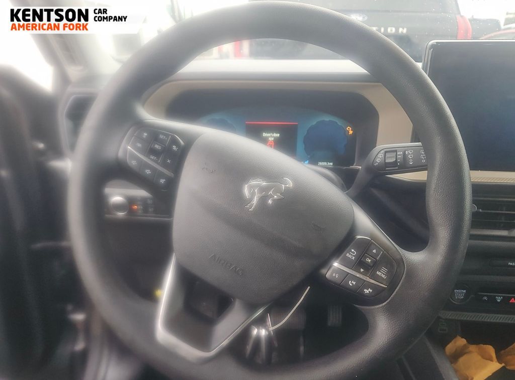 Equipment Group 200A, 4-Wheel Disc Brakes, 6 Speakers, ABS brakes, Air Conditioning, Alloy wheels, AM/FM radio: SiriusXM, AM/FM Stereo, Auto High-beam Headlights, Automatic temperature control, Brake assist, Cloth w/Easy-to-Clean Front Bucket Seats, Compass, Delay-off headlights, Driver door bin, Driver vanity mirror, Dual front impact airbags, Dual front side impact airbags, Electronic Stability Control, Emergency communication system: SYNC 4 911 Assist, Four wheel independent suspension, Front anti-roll bar, Front Bucket Seats, Front Center Armrest, Front License Plate Bracket, Front reading lights, Fully automatic headlights, Heated door mirrors, Illuminated entry, Knee airbag, Low tire pressure warning, Occupant sensing airbag, Outside temperature display, Overhead airbag, Overhead console, Panic alarm, Passenger door bin, Passenger vanity mirror, Power door mirrors, Power steering, Power windows, Radio data system, Rear anti-roll bar, Rear Parking Sensors, Rear reading lights, Rear seat center armrest, Rear window defroster, Rear window wiper, Remote keyless entry, Security system, SiriusXM, Speed control, Speed-sensing steering, Speed-Sensitive Wipers, Split folding rear seat, Steering wheel mounted audio controls, SYNC 4 w/Enhanced Voice Recognition, Tachometer, Telescoping steering wheel, Tilt steering wheel, Traction control, Trip computer, Variably intermittent wipers, and Wheels: 17'' Carbonized Gray-Painted Aluminum.