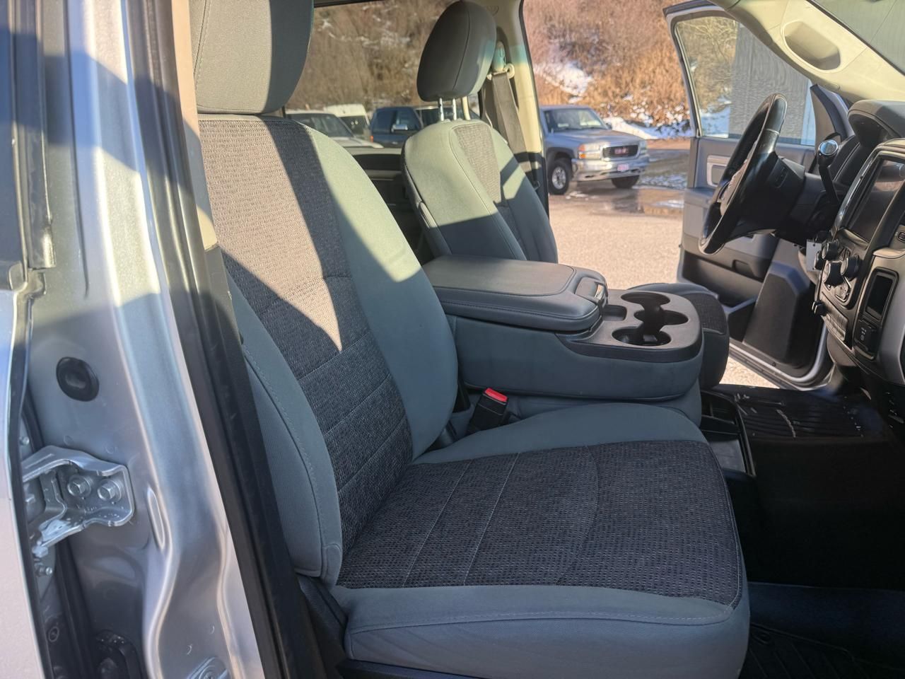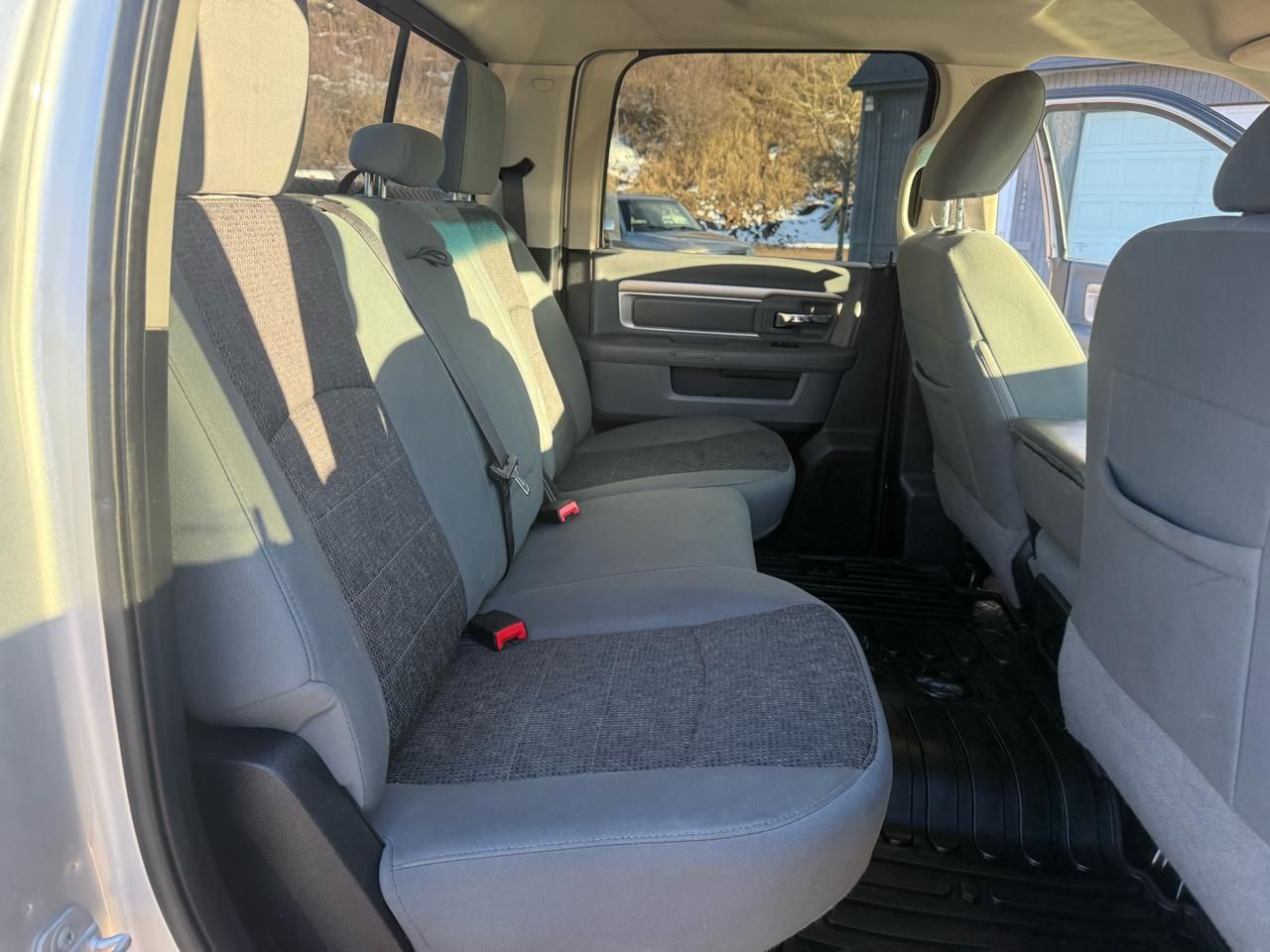 3.73 Rear Axle Ratio,GVWR: 9-000 lbs,50 State Emissions,Transmission w/Driver Selectable Mode,Part-Time Four-Wheel Drive,Electronic Transfer Case,Anti-Spin Differential Rear Axle,Transmission Oil Cooler,730CCA Maintenance-Free Battery w/Run Down Protection,160 Amp Alternator,Front Bumper Sight Shields,Next Generation Engine Controller,Tip Start,Trailer Wiring Harness,Class V Towing Equipment -inc: Hitch- Brake Controller and Trailer Sway Control,2250# Maximum Payload,HD Gas-Pressurized Shock Absorbers,Front Anti-Roll Bar,Hydraulic Power-Assist Steering,Single Stainless Steel Exhaust,31 Gal. Fuel Tank,Auto Locking Hubs,Multi-Link Front Suspension w/Coil Springs,Solid Axle Rear Suspension w/Coil Springs,4-Wheel Disc Brakes w/4-Wheel ABS- Front And Rear Vented Discs- Brake Assist and Hill Hold Control,Regular Box Style,Firestone Brand Tires,Steel Spare Wheel,Non-Metallic Paint,Chrome Front Bumper,Chrome Rear Step Bumper,Black Side Windows Trim and Black Front Windshield Trim,Chrome Door Handles,Black Exterior Mirrors,Power Rear Window,Variable Intermittent Wipers,Deep Tinted Glass,Fully Galvanized Steel Panels,Front License Plate Bracket,Hemi Badge,Tailgate Rear Cargo Access,Auto On/Off Reflector Halogen Headlamps w/Delay-Off,Cargo Lamp w/High Mount Stop Light,Fog Lamps,Vendor Painted Cargo Box Tracking,Rear Wheel Spats,Radio w/Clock- Voice Activation and Radio Data System,6 Speakers,Fixed Antenna,Streaming Audio,GPS Antenna Input,Charge Only Remote USB Port,4-Way Driver Seat -inc: Manual Recline and Fore/Aft Movement,4-Way Passenger Seat -inc: Manual Recline and Fore/Aft Movement,Manual Tilt Steering Column,Rear Cupholder,3 12V DC Power Outlets,Compass,Valet Function,Locking Tailgate,Cruise Control w/Steering Wheel Controls,Manual Air Conditioning,HVAC -inc: Underseat Ducts and Console Ducts,Glove Box,Full Cloth Headliner,Urethane Gear Shifter Material,Interior Trim -inc: Metal-Look Instrument Panel Insert- Metal-Look Door Panel Insert and Chrome/Metal-Look Interior Accents,Vinyl Door Trim Insert,Day-Night Rearview Mirror,Mini Overhead Console and 3 12V DC Power Outlets,Fade-To-Off Interior Lighting,Front Map Lights,Cargo Area Concealed Storage,Cab Mounted Cargo Lights,Electronically Controlled Throttle,Instrument Panel Bin- Dashboard Storage- Driver / Passenger And Rear Door Bins and 2nd Row Underseat Storage,Delayed Accessory Power,Driver Information Center,Analog Appearance,Redundant Digital Speedometer,Outside Temp Gauge,Manual Adjustable Front Head Restraints and Manual Adjustable Rear Head Restraints,Rear Center Armrest,2 Seatback Storage Pockets,Sentry Key Immobilizer,Side Impact Beams,Dual Stage Driver And Passenger Seat-Mounted Side Airbags,Tire Specific Low Tire Pressure Warning,Dual Stage Driver And Passenger Front Airbags,Airbag Occupancy Sensor,Curtain 1st And 2nd Row Airbags,Rear Child Safety Locks,Outboard Front Lap And Shoulder Safety Belts -inc: Rear Center 3 Point- Height Adjusters and Pretensioners