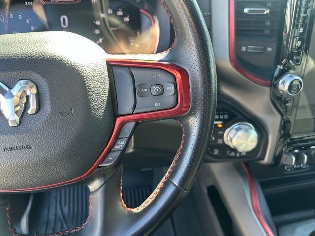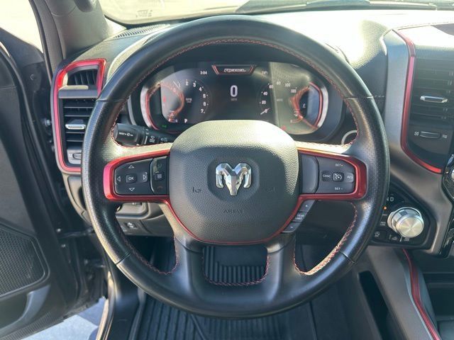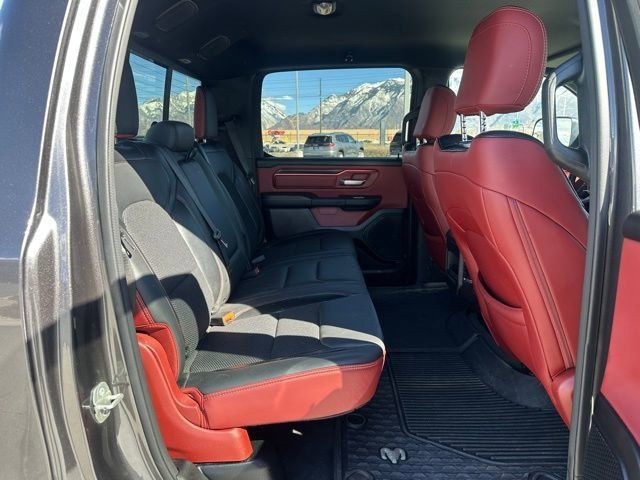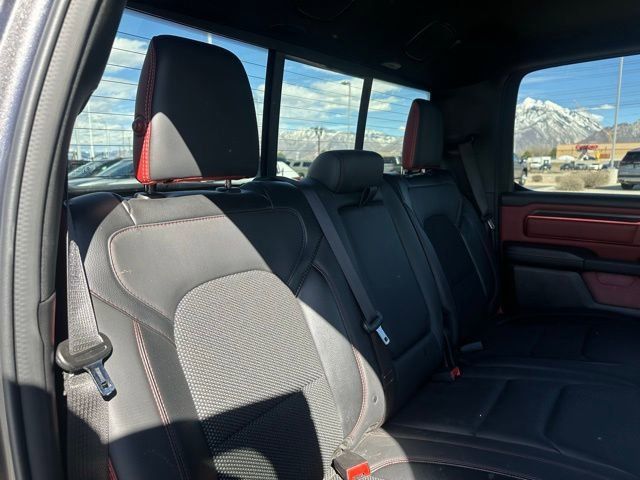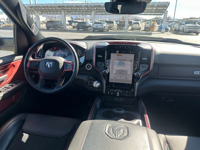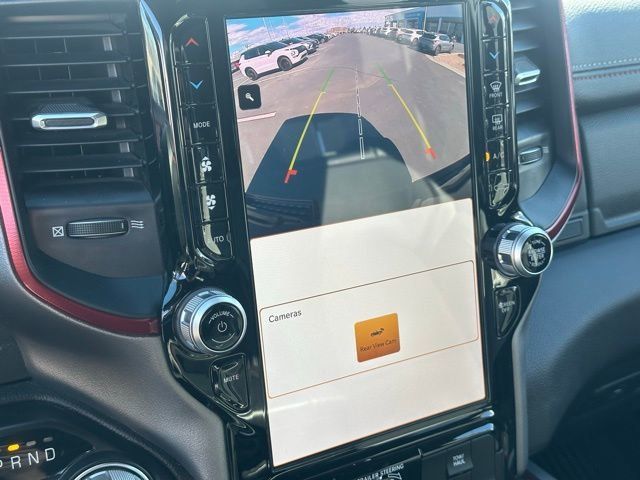 Inside the spacious Crew Cab, the Rebel offers a comfortable and tech-focused interior designed for both driver and passengers. Enjoy features like heated front seats, a heated steering wheel, power-adjustable driver seat with lumbar support, and rear power sliding window. The impressive Uconnect 5 system with a large 12-inch touchscreen and navigation keeps you connected with advanced infotainment, while the Alpine premium audio system with subwoofer delivers outstanding sound quality.