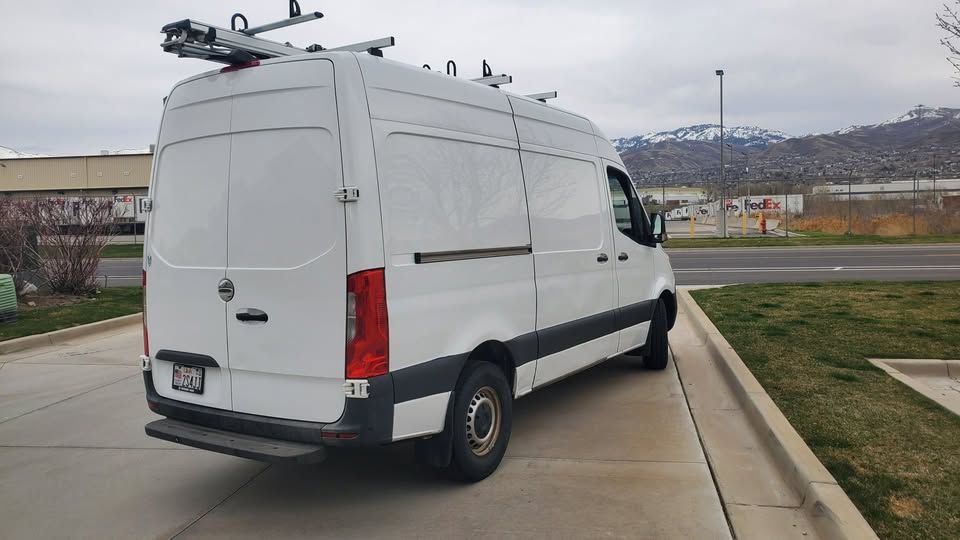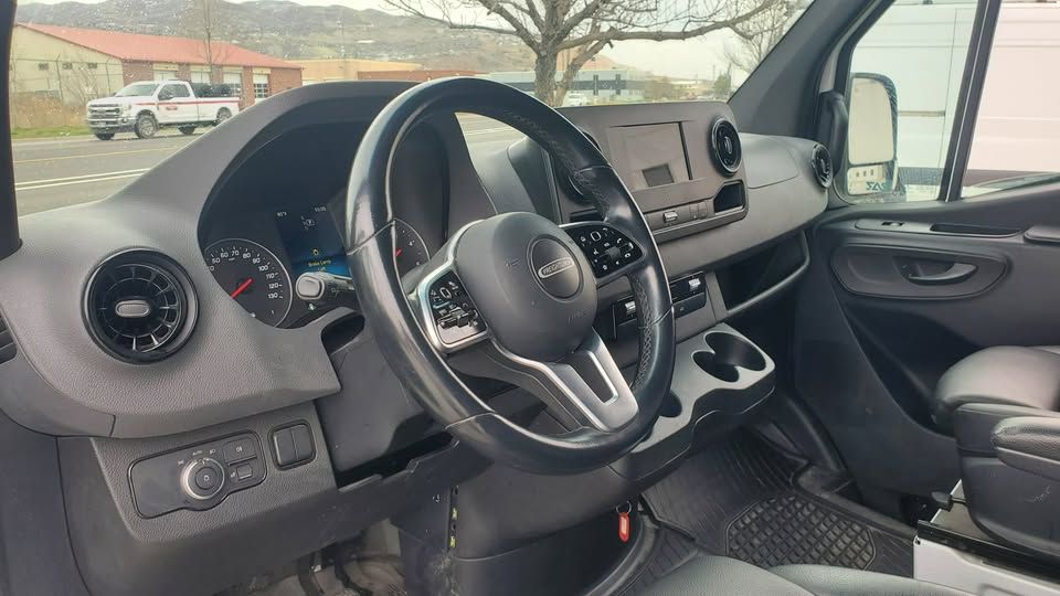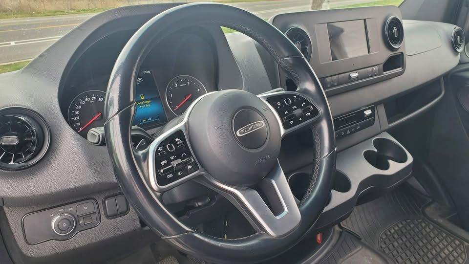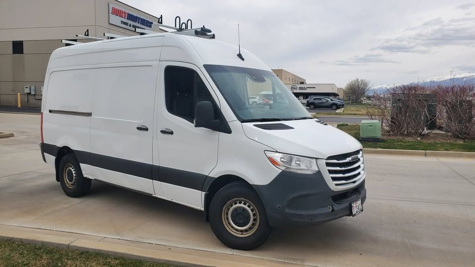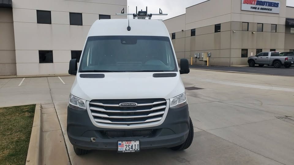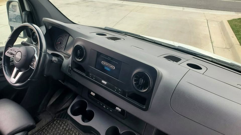Freightliner is Mercedes-Benz. We are selling older stock company vans. This van has had a 5-year/100,000-miles warranty that is still in effect. 3.0 V6 Diesel, 6-speed automanual transmission with touch shift selector, 17-20 MPG, Mercedes-Benz full powertrain warranty, and always serviced by Mercedes-Benz Warner of West Valley. Drives flawlessly, no mechanical issues. It is current on its services, and newer tires. It is being sold with the $5000.00 unfitting of: Gentili G2000 Harrier dual ladder roof rack, Ranger shelving, Cargo partition, and full flooring and wall protection. Features include Comfort Package, Driver Convenience Package, Premium Package, Satelite Radio