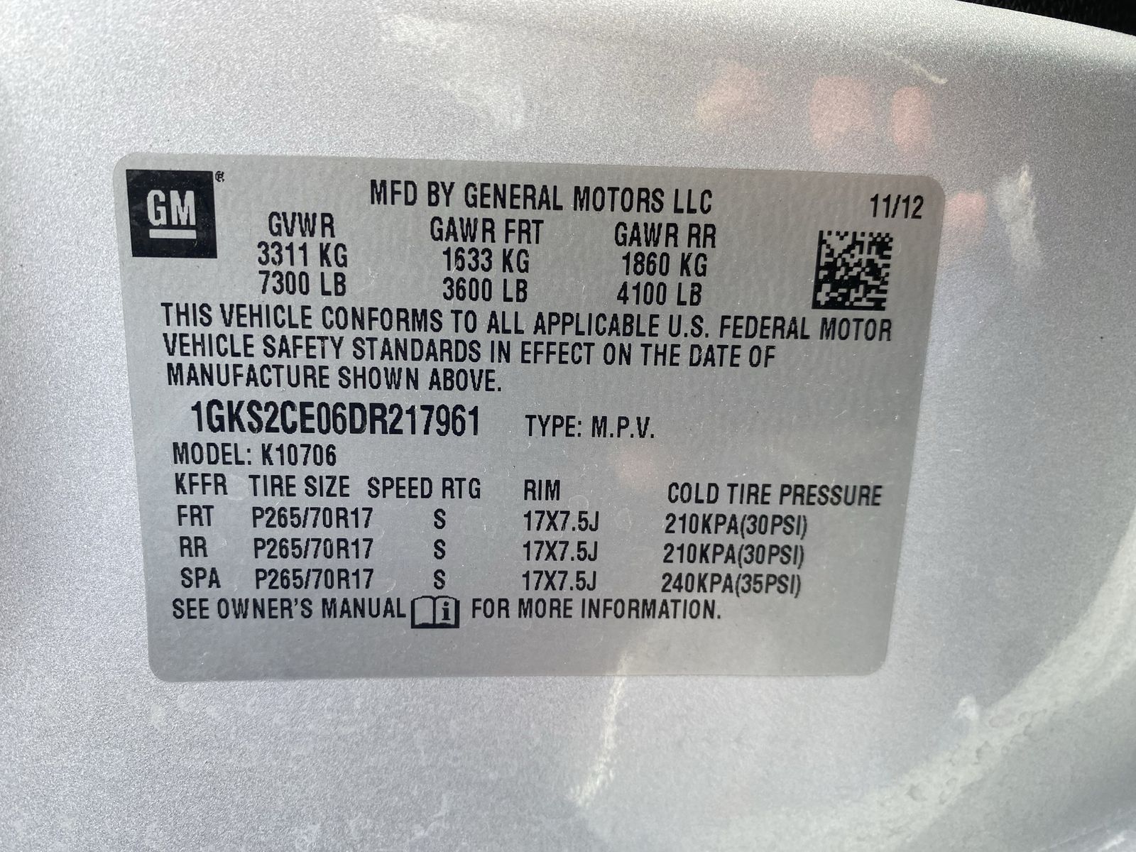 vin: 1GKS2CE06DR217961