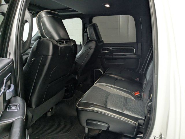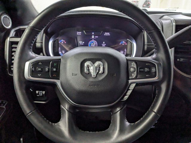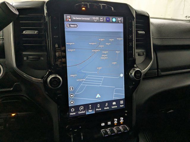 CARFAX One-Owner. 10 Speakers, 115V Auxiliary Rear Power Outlet, 12 Touchscreen Display, 17 Speaker harman/kardon Premium Sound, 2 Way Rear Headrest Seat, 220 Amp Alternator, 3.73 Axle Ratio, 4 Way Front Headrests, 4-Wheel Disc Brakes, 4G LTE Wi-Fi Hot Spot, 5th Wheel/Gooseneck Towing Prep Group, ABS brakes, Active Noise Control System, Adaptive Cruise Control w/Stop, Adaptive Steering System, Air Conditioning, Alexa Built-In, Alloy wheels, AM/FM radio: SiriusXM with 360L, Anti-Spin Differential Rear Axle, Apple CarPlay, Apple CarPlay/Android Auto, Auto Adjust In Reverse Exterior Mirrors, Auto Dim Exterior Mirror, Auto High Beam Headlamp Control, Auto Power-Folding Mirrors, Auto-Dimming Exterior Passenger Mirror, Automatic temperature control, Bed Utility Group, Black Exterior Truck Badging, Black Headlamp Bezels, Black Interior Accents, Black RAM Head Tailgate Badge, Black Tail Lamp Bezels, Black Wheel Center Hub, Blind Spot & Cross Path Detection, Body Color Grille Surround, Brake assist, Bumpers: body-color, Center Hub, Center Stop Lamp w/Cargo View Camera, Chrome Exterior Mirrors, Cluster 12 TFT Color Display, Compass, Connected Travel & Traffic Services, Connectivity - US/Canada, Delay-off headlights, Disassociated Touchscreen Display, Driver door bin, Driver vanity mirror, Dual front impact airbags, Dual front side impact airbags, Electronic Stability Control, Electronically Controlled Throttle, Exterior Mirrors Courtesy Lamps, Exterior Mirrors w/Heating Element, Exterior Mirrors w/Memory, Exterior Mirrors w/Supplemental Signals, Foam Bottle Insert (Door Trim Panel), For Details, Visit DriveUconnect.com, For More Info, Call 800-643-2112, Forward & Reverse Utility Lights, Front anti-roll bar, Front Center Armrest w/Storage, Front dual zone A/C, Front LED Fog Lamps, Front License Plate Bracket, Front reading lights, Front Seat Back Map Pockets, Full Speed Forward Collision Warning Plus, Fully automatic headlights, Garage door transmitter, Global Telematics Box Module (TBM), Gloss Black Grille Billets/Accents, Google Android Auto, GPS Antenna Input, GPS Navigation, HD Radio, Heated door mirrors, Heated Front Seats, Heated front seats, Heated Second Row Seats, Heated Steering Wheel, Heated steering wheel, High Back Seats, Illuminated entry, Integrated Voice Command w/Bluetooth, Lane Keep Assist, Laramie Level B Equipment Group, Leather steering wheel, Leather Trim 40/20/40 Bench Seat, LED Bed Lighting, LED Reflector Headlamps, LED Tail Lamps, Low tire pressure warning, Manufacturer's Statement of Origin, Mirror Power Heat Fold Memory Tele, Mirror Running Lights, MOPAR Deployable Bed Step, MOPAR Front & Rear Rubber Floor Mats, MOPAR Spray In Bedliner, Navigation System, Night Edition, Occupant sensing airbag, Off-Road Information Pages, Outside temperature display, Overhead airbag, Overhead console, Panic alarm, ParkSense Front/Rear Park Assist System, ParkView Rear Back-Up Camera, Passenger door bin, Passenger vanity mirror, Power 2-Way Driver Lumbar Adjust, Power 2-Way Passenger Lumbar Adjust, Power Adjust 8-Way Driver Seat, Power Adjust 8-Way Front Passenger Seat, Power Adjust Mirrors, Power Adjustable Convex Aux Mirrors, Power Adjustable Pedals w/Memory, Power door mirrors, Power driver seat, Power passenger seat, Power steering, Power Sunroof, Power Telescoping Mirrors, Power windows, Quick Order Package 2HH Laramie, Radio data system, Radio: Uconnect 5 Nav w/12.0 Display, Rain Sensitive Windshield Wipers, Rear 60/40 Folding Seat, Rear anti-roll bar, Rear Power Sliding Window, Rear reading lights, Rear seat center armrest, Rear step bumper, Rear Window Defroster, Remote keyless entry, Remote Tailgate Release, Safety Group, Security system, Selectable Tire Fill Alert, SiriusXM Radio Service, SiriusXM w/360L, Speed control, Split folding rear seat, Sport Performance Hood, Steering wheel mounted audio controls, Tachometer, Tilt steering wheel, Tip Start, Tow Hooks, Traction control, Trailer Tow Pages, Trip computer, Turn