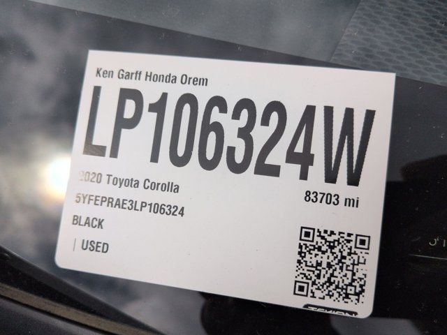 Ken Garff Honda is delighted to offer this gorgeous 2020 Toyota Corolla LE in Black Sand Pearl.Traditional Certified, 4-Wheel Disc Brakes, 6 Speakers, ABS brakes, Air Conditioning, AM/FM radio: SiriusXM, Apple CarPlay, Auto High-beam Headlights, Automatic temperature control, Brake assist, Bumpers: body-color, Delay-off headlights, Driver door bin, Driver vanity mirror, Dual front impact airbags, Dual front side impact airbags, Electronic Stability Control, Emergency communication system: Safety Connect with 3-year trial, Exterior Parking Camera Rear, Four wheel independent suspension, Front anti-roll bar, Front Bucket Seats, Front Center Armrest, Front reading lights, Fully automatic headlights, Illuminated entry, Knee airbag, Low tire pressure warning, Occupant sensing airbag, Outside temperature display, Overhead airbag, Panic alarm, Passenger door bin, Passenger vanity mirror, Power door mirrors, Power steering, Power windows, Premium Fabric Seat Trim, Radio data system, Radio: Audio AM/FM w/Navigation, Rear anti-roll bar, Rear seat center armrest, Rear window defroster, Remote keyless entry, Security system, Speed control, Split folding rear seat, Steering wheel mounted audio controls, Tachometer, Telescoping steering wheel, Tilt steering wheel, Traction control, Trip computer, Variably intermittent wipers, Wheels: 16 Wide Vent Steel.30/38 City/Highway MPGAwards: * 2020 KBB.com 10 Coolest New Cars Under $20,000In addition to transparent, no hassle pricing and upfront no hassle trade evaluation.....We provide an enjoyably brief and easy Sales Experience...Your Pace...Your Deal...No Exceptions!