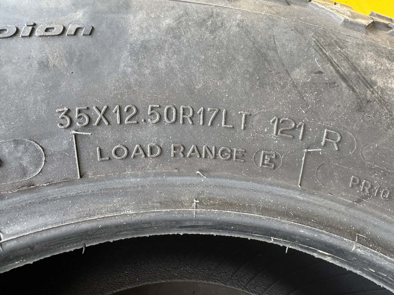 5 BF Goodrich KO2 tires with 80-90% tread, 35x12.50xR17