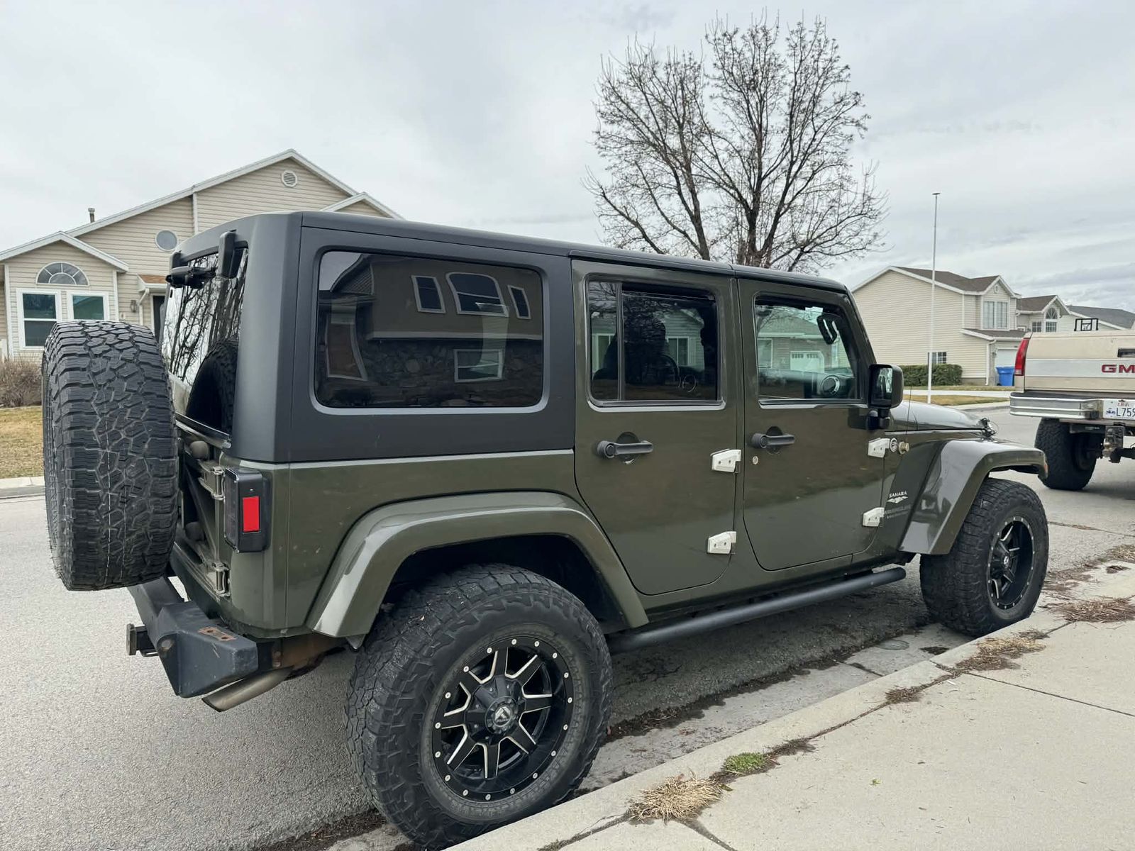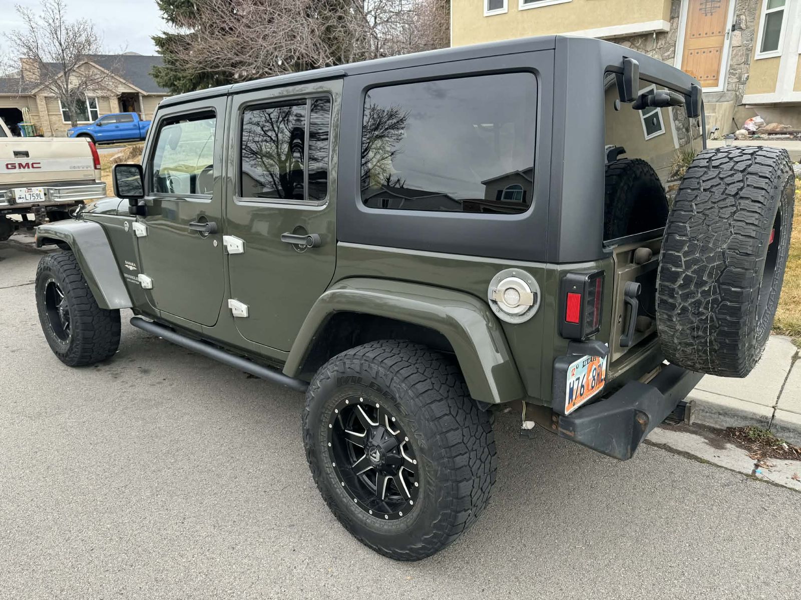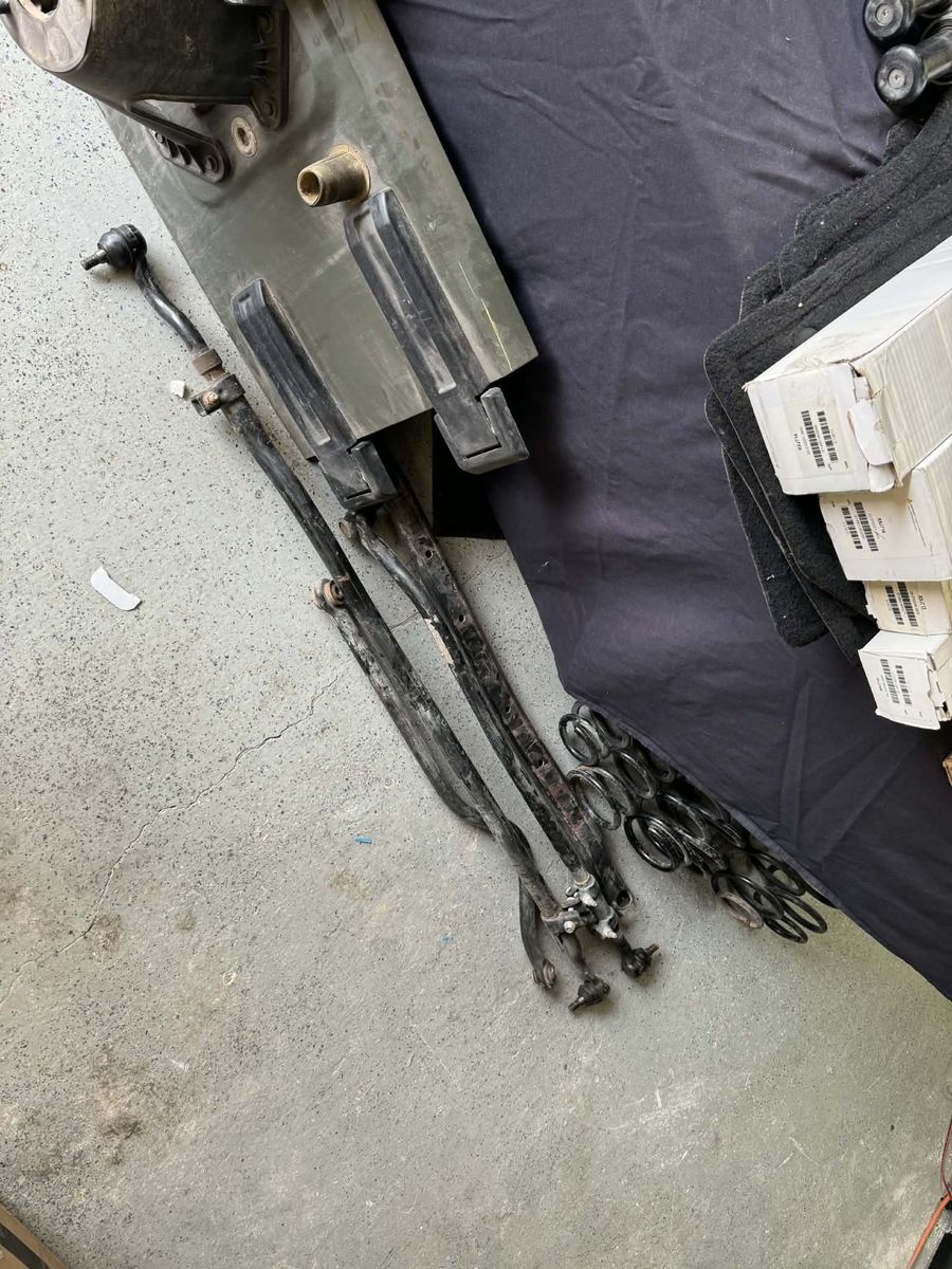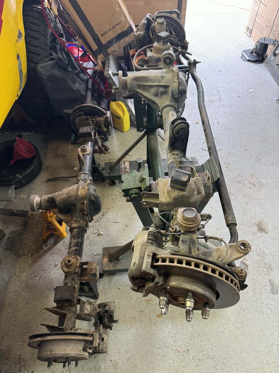 Also included are the original tailgate, door/hood hinges, passenger grab bar, front and rear floor mats, 2 sets of tail lights, and the 5 Sahara 18" rims along with some steering components(drag link/tie rod) and suspension springs. There is also a Teraflex spare tire carrier for the original tailgate to support larger tires.