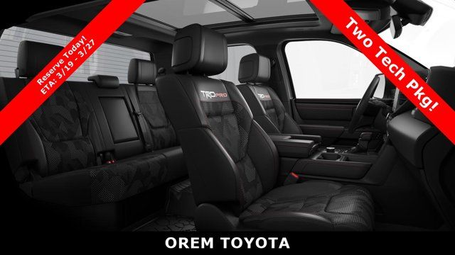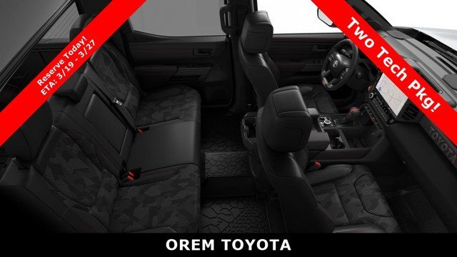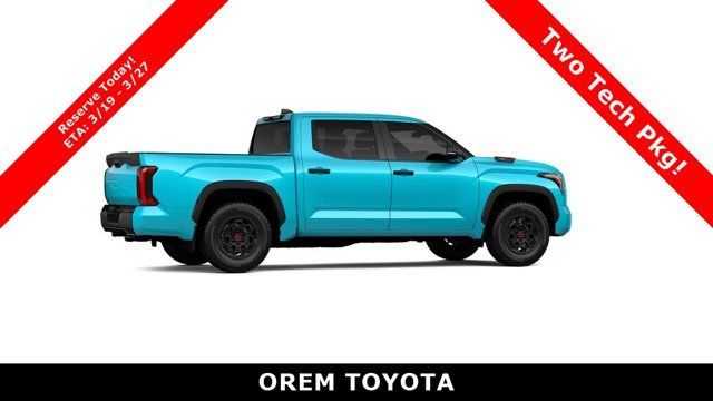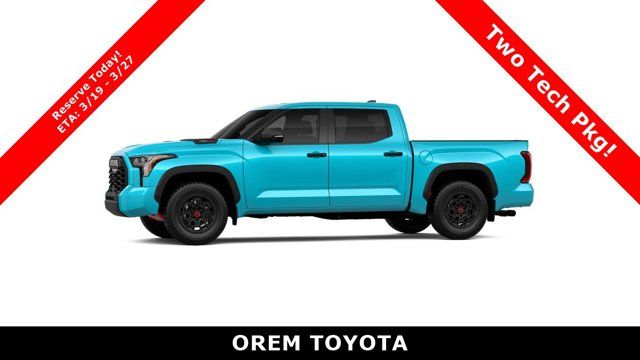 TRD PRO PACKAGE, TRD PRO BLACK BED LETTERING (TMS), TOW TECH PACKAGE -inc: Wireless Trailer Camera, EXCLUSIVE MY PAINT COLOR, BADGE OVERLAYS - WAVE MAKER (TMS), Wireless Phone Connectivity, Wheels: 18 Black Forged Aluminum BBS, Vehicle Stability Control (VSC) Electronic Stability Control (ESC), Variable Intermittent Wipers w/Heated Wiper Park, Turn-By-Turn Navigation Directions. This Toyota Tundra 4WD has a dependable Twin Turbo Gas/Electric V-6 3.4 L/210 engine powering this Automatic transmission.*These Packages Will Make Your Toyota Tundra 4WD TRD Pro Hybrid The Envy of Your Friends Transmission: 10-Speed Automatic -inc: intelligence (ECT-i), sequential shift mode, uphill/downhill shift logic and TOW/HAUL driving modes, Transmission w/Driver Selectable Mode and Oil Cooler, Trailer Wiring Harness, Tracker System, Tires: P285/65R18 All-Terrain, Tire Pressure Monitor System (TPMS) Low Tire Pressure Warning, Steel Spare Wheel, Sport Leather Steering Wheel, Splash Guards, Solid Axle Rear Suspension w/Coil Springs, SofTex Seat Trim -inc: stitched TRD Pro logo and technical camo pattern inserts, Smart Device Remote Engine Start, Smart Device Integration, Single Stainless Steel Exhaust w/Black Tailpipe Finisher, Side Impact Beams, Seats w/Leatherette Back Material, Right Side Camera, Remote Releases -Inc: Power Fuel, Remote Keyless Entry w/Integrated Key Transmitter, Illuminated Entry and Panic Button, Regular Composite Box Style. Stop By Today *Come in for a quick visit at Orem Toyota, 1400 S. Sandhill Rd, Orem, UT 84058 to claim your Toyota Tundra 4WD!