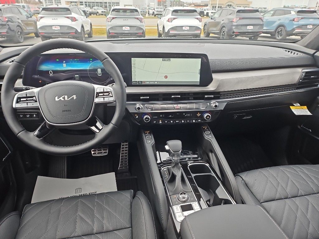 Start this vehicle from inside with remote start. The vehicle comes equipped with Android Auto for seamless smartphone integration on the road. See what's behind you with the back up camera on this model. Bluetooth technology is built into this unit, keeping your hands on the steering wheel and your focus on the road. The vehicle's Lane Departure Warning keeps you safe by alerting you when you drift from your lane. Keep your hands warm all winter with a heated steering wheel in the vehicle . You'll never again be lost in a crowded city or a country region with the navigation system on this Kia Telluride. It offers Apple CarPlay for seamless connectivity. The leather seats in this unit are a must for buyers looking for comfort, durability, and style. This Kia Telluride utilizes collision avoidance to enhance safety by automatically detecting and evading potential accidents. This 2025 Kia Telluride has a V6, 3.8L high output engine.