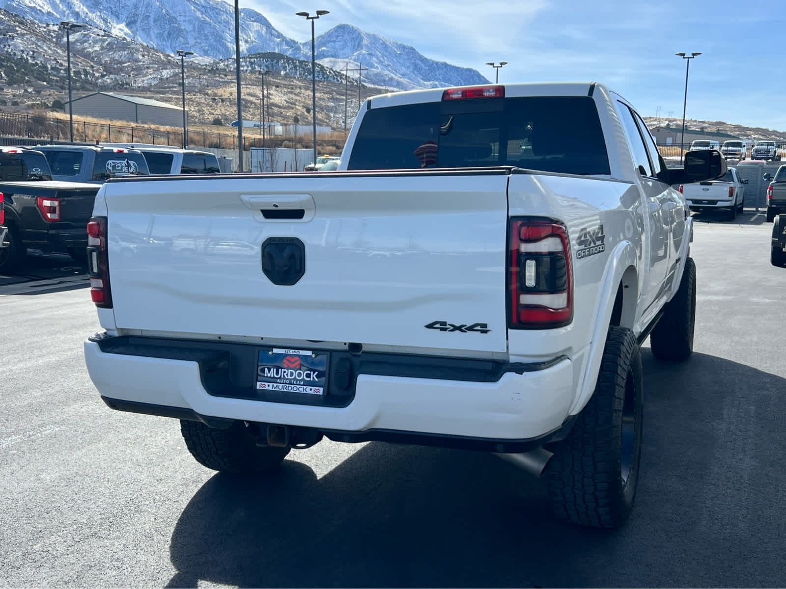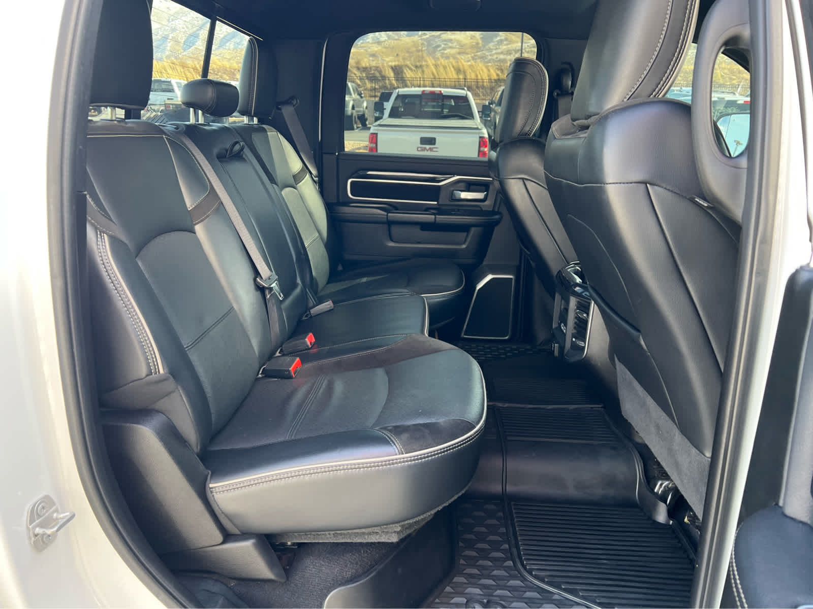 Selective Catalytic Reduction (Urea), Dual 730 Amp Maintenance Free Batteries, Cummins Turbo Diesel Badge, Heavy Duty Engine Cooling, Supplemental Heater, 220 Amp Alternator, Tow Hooks, Diesel Exhaust Brake, Front Bumper Sight Shields, Capless Fuel Fill w/o Discriminator, Blind Spot & Cross Path Detection, Power Chrome Tow Mirrors w/Convex Spotter & Memory, Mirror-Mounted Aux Reverse Lamps, Exterior Mirrors w/Memory, Power Adjustable Convex Aux Mirrors, Rain Sensitive Windshield Wipers, Power Adjustable Pedals w/Memory, Radio: Uconnect 4C Nav w/8.4 Display, SiriusXM Traffic Plus, Disassociated Touchscreen Display, HD Radio, For Details Visit DriveUconnect.com, 1-Year SiriusXM Guardian Trial, GPS Navigation, SiriusXM Travel Link, Ventilated Front Seats, Remote Tailgate Release, Media Hub w/2 Charge Only USBs, 17 Speaker harman/kardon Premium Sound, Auto High Beam Headlamp Control, Heated Second Row Seats, Foam Bottle Insert (Door Trim Panel), 2nd Row In Floor Storage Bins, Radio/Driver, Mirror-Mounted Aux Reverse Lamps, Black Ram Head Tailgate Badge, Wheels: 20 x 8.0 Black Painted Aluminum, Black Wheel Center Hub, Black Headlamp Bezels, Body Color Door Handles, Painted Front Bumper, Painted Rear Bumper, Tires: LT285/60R20E OWL On/Off Road, Black Exterior Truck Badging, Exterior Mirrors w/Memory, Gloss Black Grille Billets/Accents, Body Color Grille Surround, Black Interior Accents, Black Exterior Mirrors, Black Tail Lamp Bezels, Power Black Tow Mirrors w/Convex Spotter & Memory, Power Adjustable Convex Aux Mirrors, Bucket Seats, High Back Seats, #1 Seat Foam Cushion, Folding Flat Load Floor Storage, Full Length Upgraded Floor Console, ANTI-SPIN DIFFERENTIAL REAR AXLE, Chrome Accent Shift Control.