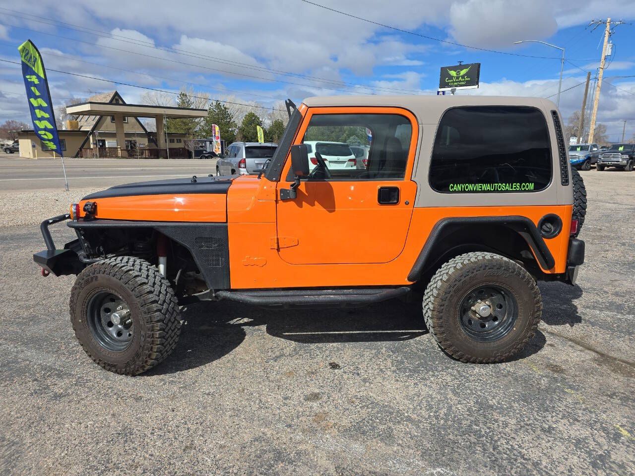 Are you looking for a good looking off-roader that's ready for long trips or finding your way out to the mountains? Check out this restored 1999 Jeep Wrangler sport! New oversized off-road tires, new lights, new top, new custom steel bumpers, new custom steel front fenders, and a new fresh paint job! This Jeep will take you almost anywhere for a lot of miles with the bullet proof 4.0 inline 6 paired with the 5 speed manual transmission! Comes equipped with an aftermarket pioneer stereo, hot heat and cold AC! This one is in excellent shape! If this Jeep isn't the one for you, don't hesitate to jump online to canyonviewautosales.com to check out the rest of our selection! Trades are welcome!
