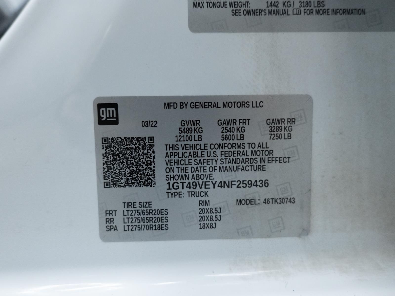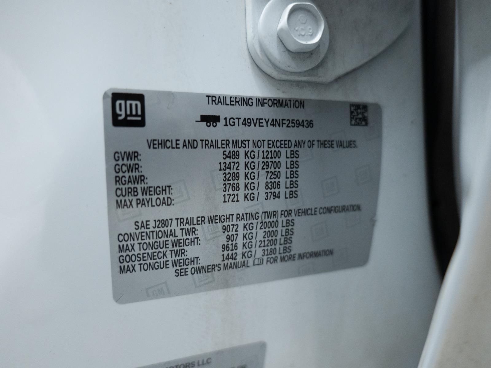 GVWR 12100 LBS. (5488 KG) WITH SINGLE REAR WHEELS