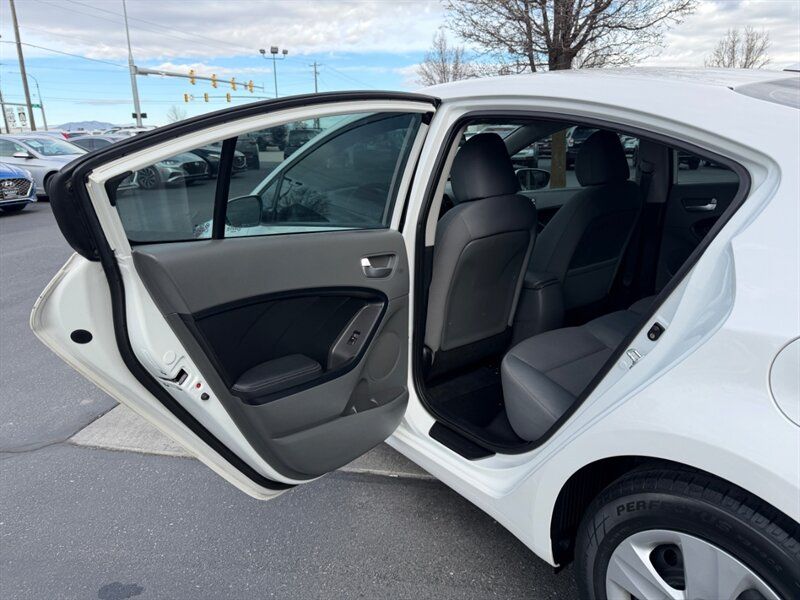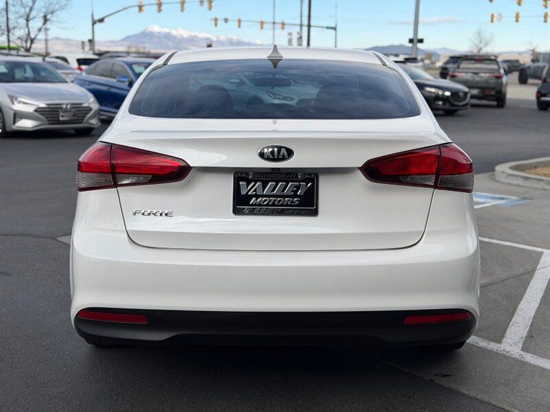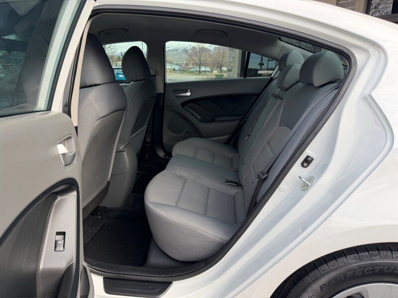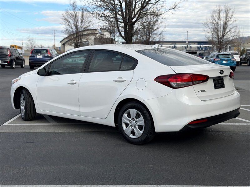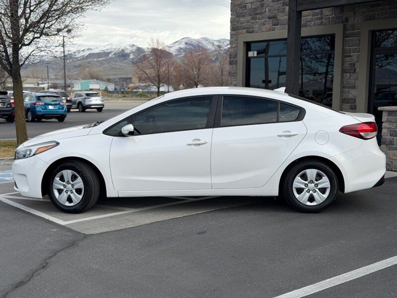 2017 Kia Forte LX finished in Snow White Pearl with a Black cloth interior. It is powered by the Nu 2.0L inline-4 engine rated at 147 hp and 132 lb-ft of torque, and it delivers an EPA-estimated 25 MPG city and 33 MPG highway. This well-maintained example has under 90,000 miles (averaging less than 9,000 miles per year), is in excellent overall condition, and comes with a clean CARFAX report.