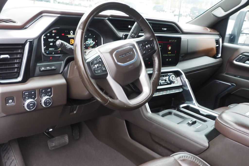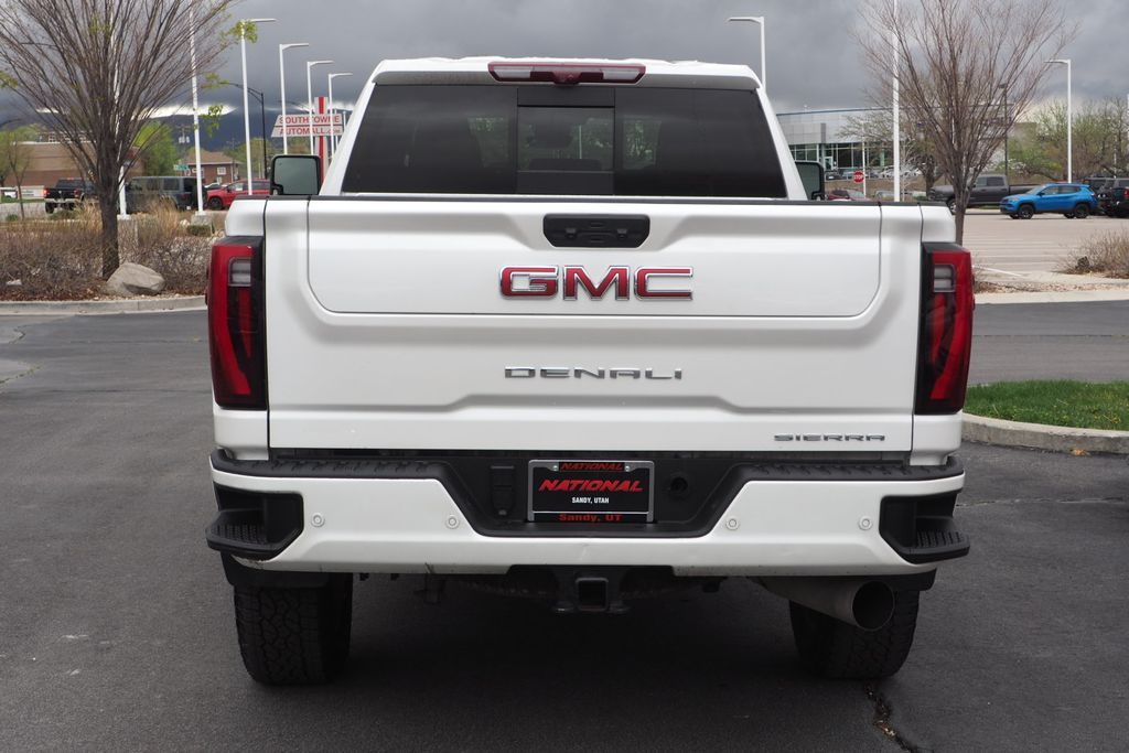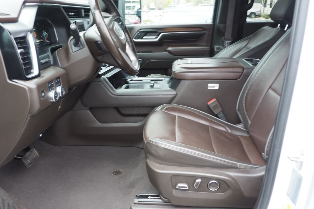 White Frost 2024 GMC Sierra 3500HD Denali 4WD 10-Speed Automatic Duramax 6.6L V8 Turbodiesel POWER BOARDS, 1-OWNER, 10-Speed Automatic, 4WD, Atmosphere/Brownstone Leather, 120-Volt Bed Mounted Power Outlet, 120-Volt Instrument Panel Power Outlet, 2 Charge-Only Rear USB Ports, 2 Charge/Data USB Ports Inside Center Console, 2 USB Ports, 2-Speed Active Transfer Case, Adaptive Cruise Control, Auto-Dimming Inside Rearview Mirror w/Camera, Bed View Camera w/2 Trailer Camera Provisions, Bose Premium 7-Speaker Sound System, Deep-Tinted Glass, Denali Reserve Package, Electric Rear-Window Defogger, Floor-Mounted Center Console, Front Rain-Sensing Wipers, Gooseneck/5th Wheel Prep Package, HD Surround Vision, Heated 2nd Row Outboard Seats, Heated Driver & Front Outboard Passenger Seats, Integrated Trailer Brake Controller, Keyless Open & Start, LED Cargo Area Lighting, LED Smoked Amber Roof Marker Lamps, Manual Tilt-Wheel/Telescoping Steering Column, Multicolor 15'' Diagonal Head-Up Display, Polished Exhaust Tip, Power Front Windows w/Passenger Express Up/Down, Power Sliding Rear Window w/Defogger, Power Sunroof, Preferred Equipment Group 5SA, Push Button Start, Rear Cross Traffic Alert, Remote Vehicle Starter System, Safety Alert Seat, Signature Chrome Denali Grille, SiriusXM w/360L, Spray-On Pickup Bedliner w/Denali Logo, Steering Wheel Audio Controls, Technology Package, Trailer Camera Provisions, Trailer Side Blind Zone Alert, Ultrasonic Front & Rear Park Assist, Unauthorized Entry Theft-Deterrent System, Universal Home Remote, Ventilated Driver & Front Passenger Seats, Wireless Charging, Wireless Phone Projection.