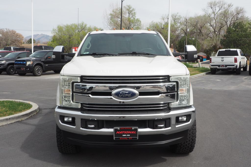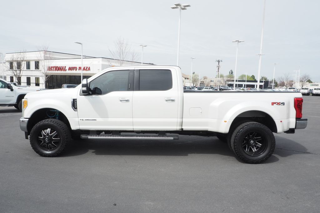 White Platinum 2017 Ford F-350SD Lariat 4WD TorqShift 6-Speed Automatic Power Stroke 6.7L V8 DI 32V OHV Turbodiesel LIFTED, CLEAN CARFAX, 1-OWNER, CUSTOM BUILT TRUCK, OVERSIZED AFTER MARKET WHEELS AND TIRES, 4WD, 6'' Angular Chrome Step Bars, Body-Color Door Handles w/Chrome Insert, Chrome Exhaust Tip, Chrome Package, Colored Front & Rear Rancho Branded Shocks, FX4 Off-Road Package, GVWR: 14,000 lb Payload Package, Hill Descent Control, Order Code 628A, Unique Chrome Mirror Caps, Unique FX4 Off-Road Box Decal.