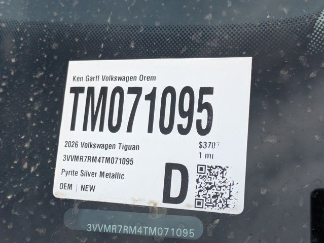 Pyrite Silver Metallic 2026 Volkswagen Tiguan 2.0T SE AWD 8-Speed Automatic 2.0L TSI DOHC Heavy Duty Trunk Liner with VW CarGo Blocks, Panoramic Sunroof Package, Rubber Monster Mats Kit (set of 4), VW Care, 4-Wheel Disc Brakes, 4-Wheel Independent Suspension, 7 Speakers, ABS brakes, Air Conditioning, Alloy wheels, AM/FM radio: SiriusXM with 360L, Auto High-beam Headlights, Auto-dimming Rear-View mirror, Automatic temperature control, Brake assist, Bumpers: body-color, Compass, Delay-off headlights, Driver door bin, Driver vanity mirror, Dual front impact airbags, Dual front side impact airbags, Electronic Stability Control, Emergency communication system, Exterior Parking Camera Rear, First Aid Kit, Four wheel independent suspension, Front anti-roll bar, Front Bucket Seats, Front Center Armrest, Front dual zone A/C, Front reading lights, Fully automatic headlights, Heated door mirrors, Heated Front Seats, Heated front seats, Illuminated entry, Knee airbag, Leather Shift Knob, Low tire pressure warning, Occupant sensing airbag, Outside temperature display, Overhead airbag, Overhead console, Panic alarm, Passenger door bin, Passenger vanity mirror, Perforated V-Tex Leatherette Seating Surfaces, Power door mirrors, Power driver seat, Power Liftgate, Power steering, Power windows, Radio data system, Radio: MIB4 Composition Media Touchscreen with AM/FM, Rain sensing wipers, Rear anti-roll bar, Rear reading lights, Rear seat center armrest, Rear side impact airbag, Rear window defroster, Rear window wiper, Remote keyless entry, Security system, Speed control, Speed-sensing steering, Split folding rear seat, Spoiler, Steering wheel mounted audio controls, Tachometer, Telescoping steering wheel, Tilt steering wheel, Traction control, Trip computer, Turn signal indicator mirrors, Variably intermittent wipers, Wheels: 19 2-Tone Machined Alloy, IQ DRIVE, Heavy Duty Trunk Liner with VW CarGo Blocks, Panoramic Sunroof Package, Rubber Monster Mats Kit (set of 4), VW Care.Recent Arrival! $1,500 Financing Discount Included in all Discounts. Must allow Ken Garff VW to arrange financing. Must finance a minimum of 90% of MSRP. Not Valid with 0% or other subvented interest rates. Remaining Discounts are a Combination of Ken Garff Discounts and Remaining Manufacturer Rebates and Incentives. See dealer for complete details and limitations. $1000 - Customer Bonus. Exp. 04/30/2026