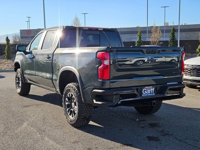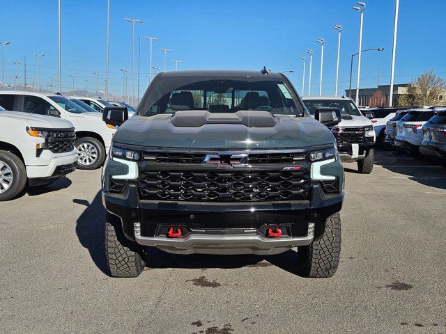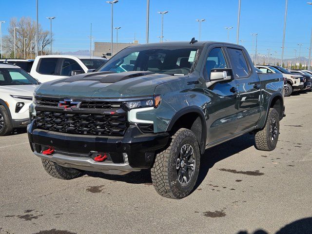 CYPRESS GRAY,LPO BLACK NAMEPLATES (dealer-installed),ENGINE BLOCK HEATER,SEATS FRONT BUCKET with center console (STD) (Includes (EPH) Electronic Transmission Range Selector (console mounted).),LPO DARK ESSENTIALS PACKAGE includes (RIK) Black Silverado nameplates along with where applicable Black Custom/LT/RST/LTZ/High Country/Z71/6.2L/Duramax badges LPO and (SB7) Black tailgate CHEVROLET lettering LPO (dealer-installed),LICENSE PLATE KIT FRONT,AUDIO SYSTEM CHEVROLET INFOTAINMENT 3 PREMIUM SYSTEM with Google built-in compatibility (select service plan required terms and limitations apply) including navigation capability 13.4 diagonal HD color touchscreen includes multi-touch display AM/FM stereo Bluetooth streaming audio for music and most phones; featuring Wireless Apple CarPlay and Wireless Android Auto capability for compatible phones advanced voice recognition in-vehicle apps personalized profiles for infotainment and vehicle settings (STD),ZR2 PREFERRED EQUIPMENT GROUP includes standard equipment,WHEELS 18 X 8.5 (45.7 CM X 21.6 CM) ALUMINUM MACHINED FACE with Black Painted spokes and Oxide Gold painted outer ring accents (STD),REAR AXLE 3.23 RATIO,TRANSMISSION 10-SPEED AUTOMATIC with Electronic Transmission Range Selector (ETRS) electronically controlled with overdrive tow/haul mode and steering column paddle shifters. Includes Cruise Grade Braking and Powertrain Grade Braking (STD),ENGINE DURAMAX 3.0L TURBO-DIESEL I6 (305 hp [227 kW] @ 3750 rpm 495 lb-ft of torque [671 Nm] @ 2750 rpm) (STD) (Includes (KW5) 220-amp alternator and (K05) engine block heater.),GVWR 7300 LBS. (3311 KG) (STD),JET BLACK/GRAYSTONE PERFORATED LEATHER SEATING SURFACES,Cruise Control,Adjustable Steering Wheel,Back-Up Camera,Heads-Up Display,Adaptive Cruise Control,Tow Hitch,Lane Departure Warning,Lane Keeping Assist,Front Collision Mitigation,Front Collision Warning,Automatic Highbeams,Turbocharged,Keyless Start,Locking/Limited Slip Differential,Locking/Limited Slip Differential,Four Wheel Drive,Tow Hooks,Power Steering,ABS,4-Wheel Disc Brakes,Aluminum Wheels,Tires - Front All-Terrain,Tires - Rear All-Terrain,Conventional Spare Tire,Bed Liner,Daytime Running Lights,HID headlights,LED Headlights,Automatic Highbeams,Fog Lamps,Heated Mirrors,Power Mirror(s),Mirror Memory,Power Folding Mirrors,Privacy Glass,Intermittent Wipers,Variable Speed Intermittent Wipers,Rain Sensing Wipers,Integrated Tailgate Step,AM/FM Stereo,Navigation System,MP3 Capability,Bluetooth Connection,Auxiliary Audio Input,Smart Device Integration,Requires Subscription,Satellite Radio,Requires Subscription,Premium Sound System,Bluetooth Connection,Smart Device Integration,Bluetooth Connection,WiFi Hotspot,Bucket Seats,Leather Seats,Power Driver Seat,Driver Adjustable Lumbar,Power Passenger Seat,Passenger Adjustable Lumbar,Heated Front Seat(s),Heated Front Seat(s),Cooled Front Seat(s),Mirror Memory,Seat Memory,Heated Rear Seat(s),Pass-Through Rear Seat,Leather Seats,Rear Bench Seat,Floor Mats,Heated Steering Wheel,Steering Wheel Audio Controls,Adjustable Steering Wheel,Heads-Up Display,Power Windows,Power Windows,Rear Defrost,Sliding Rear Window,Power Door Locks,Remote Engine Start,Keyless Entry,Power Door Locks,Keyless Start,Universal Garage Door Opener,Cruise Control,Adaptive Cruise Control,Security System,MP3 Capability,Auxiliary Audio Input,MP3 Capability,Auxiliary Audio Input,Climate Control,Multi-Zone A/C,A/C,A/C,Rear A/C,Rear Defrost,Auto-Dimming Rearview Mirror,Back-Up Camera,Front Collision Mitigation,Front Collision Warning,Cross-Traffic Alert,Front Collision Mitigation,Traction Control,Stability Control,Daytime Running Lights,Driver Air Bag,Passenger Air Bag,Front Side Air Bag,Front Head Air Bag,Rear Head Air Bag,Passenger Air Bag Sensor,Telematics,Requires Subscription,Telematics,Navigation from Telematics,Requires Subscription,Rear Parking Aid,Back-Up Camera,Aerial View Display System,Back-Up Camera,Blind Spot Monitor,Lane Departure Warning,Lane Keeping Assist,Front Collision Warning,Driver Restriction Features,Tire Pressure Monitor