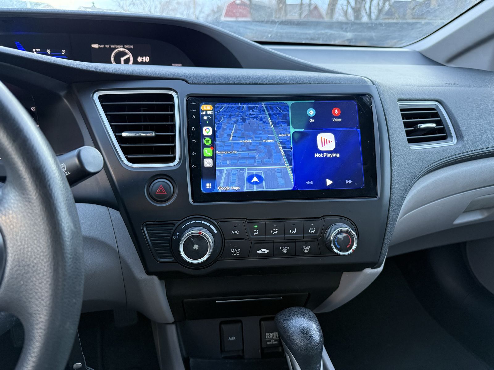 2013 Honda Civic LX for sale. Runs and drives great and has been a very reliable daily driver. It has an aftermarket touchscreen installed that supports Apple CarPlay and Android Auto, which makes it really convenient for navigation, music, and calls. The car is clean, comfortable, and great on gas. It also comes with a spare key.