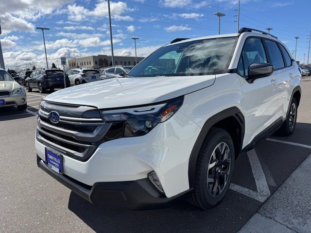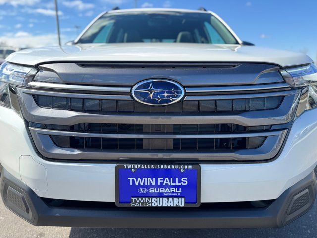 2026 Subaru Forester Premium Crystal White Pearl Premium AWD 2.5L 4-Cylinder DOHC 16V Lineartronic CVT4-Wheel Disc Brakes, 6 Speakers, ABS brakes, Air Conditioning, Alloy wheels, AM/FM radio: SiriusXM with 360L, Anti-whiplash front head restraints, Auto High-beam Headlights, Automatic temperature control, Brake assist, Bumpers: body-color, Driver door bin, Driver vanity mirror, Dual front impact airbags, Dual front side impact airbags, Electronic Stability Control, Emergency communication system: MySubaru Companion (5-years free), Exterior Parking Camera Rear, Four wheel independent suspension, Front anti-roll bar, Front Bucket Seats, Front Center Armrest, Front dual zone A/C, Front fog lights, Front reading lights, Fully automatic headlights, Heated door mirrors, Heated Front Bucket Seats, Heated front seats, Illuminated entry, Knee airbag, Leather steering wheel, Low tire pressure warning, Occupant sensing airbag, Outside temperature display, Overhead airbag, Overhead console, Panic alarm, Passenger door bin, Passenger vanity mirror, Power door mirrors, Power driver seat, Power moonroof: Panoramic, Power steering, Power windows, Premium Textured Cloth Upholstery, Radio data system, Radio: Subaru 11.6 Multimedia Plus System, Rear anti-roll bar, Rear seat center armrest, Rear window defroster, Rear window wiper, Remote keyless entry, Security system, Speed control, Speed-sensing steering, Split folding rear seat, Spoiler, Steering wheel mounted audio controls, Tachometer, Telescoping steering wheel, Tilt steering wheel, Traction control, Trip computer, Variably intermittent wipers, Wheels: 17 x 7.0 J Dark Metallic Aluminum-Alloy.Visit www.twinfalls-subaru.com To See Our Specials!! Call us at 208-734-8860 for help from any of our team members. Let us show you how great it can be to work with the Magic Valley's #1 Volume Automotive Retailer!