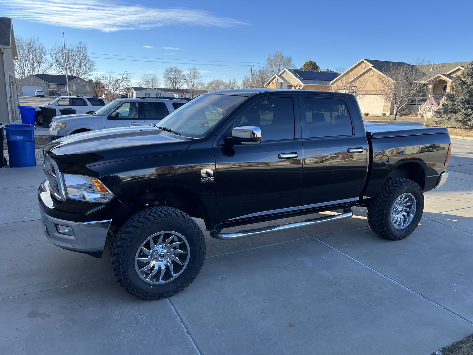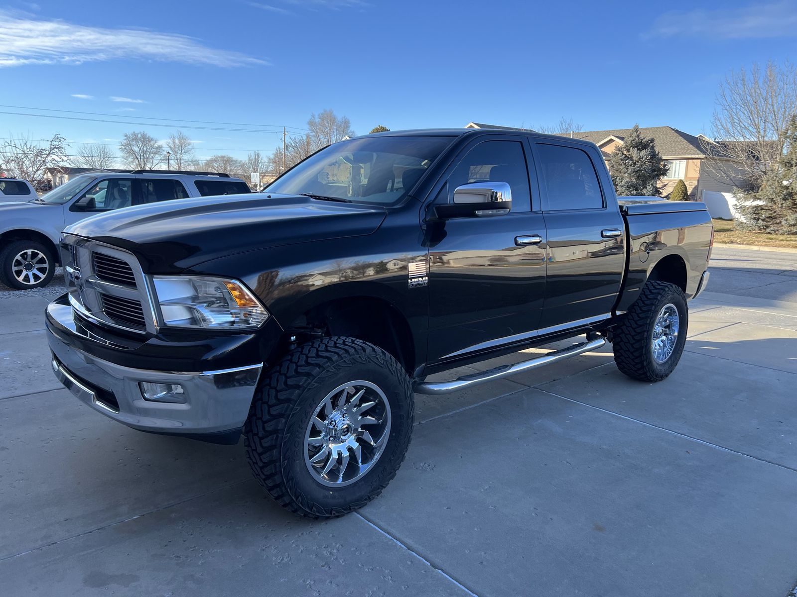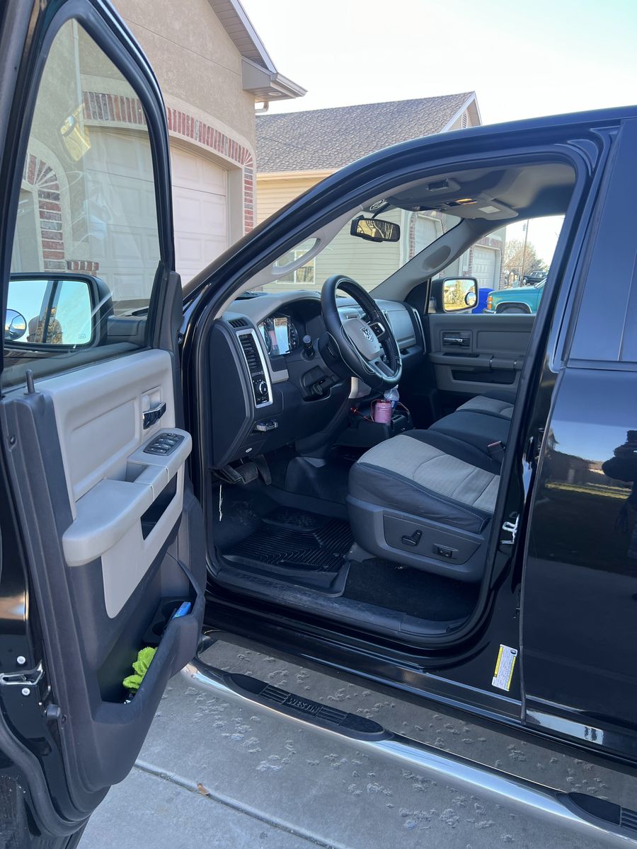 2010 Ram 1500. Amazing condition inside and out. Zero rust in this truck. Very meticulously maintained. Adult owned. I’m the second owner. I have service documentation from when it was new up until current. Clean title. 4 door, 5.7 Hemi with the automatic transmission 178,800 miles, 4x4. Performance exhaust. Tinted windows, Weather Tech Floor mats. apple car play, Back up camera. Bluetooth, power everything. Everything works as it should. Recent engine flush and oil change. Synthetic oil always used. 6 inch suspension lift 1 year ago, new 20” chrome Fuel wheels with brand new 37” tires. Only 500 miles on them. New CV Adele’s 1 year ago. Beautiful black paint and black/grey two tone cloth interior. Paint matched locking taneau cover. (Truck is in storage currently so it’ll be dusty. )