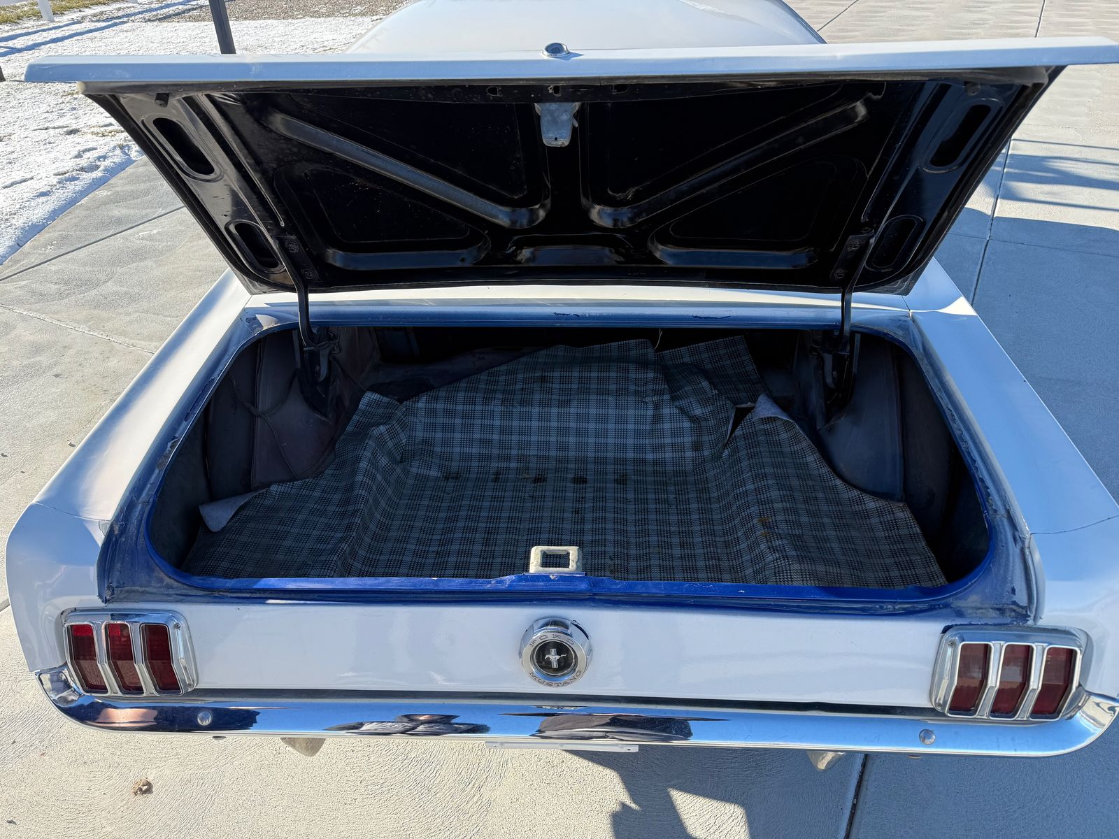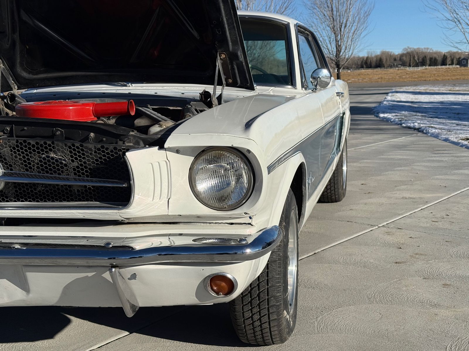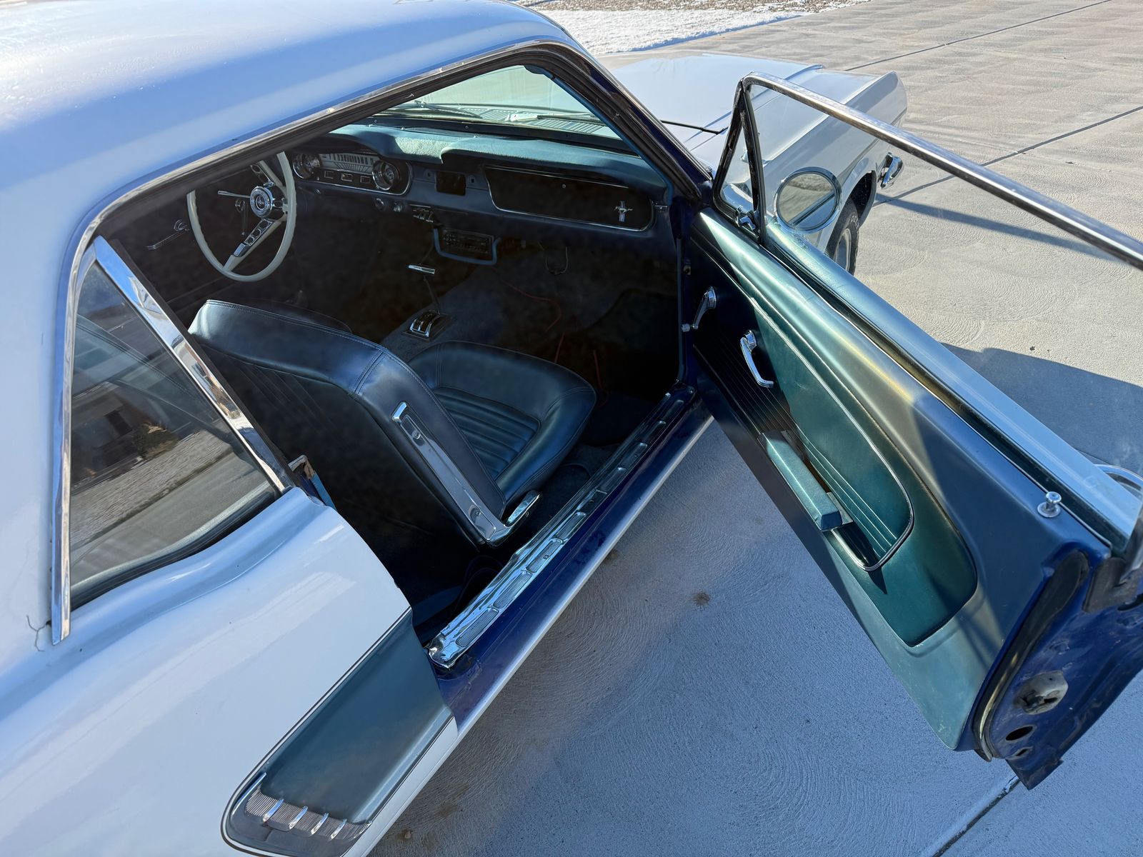 This is a 1965 Mustang Coupe. It sat not running in my garage for two years. I just got it back from the mechanic, who got it working for me, so IT IS RUNNING. I have listed everything the mechanic did below. The engine has NOT been rebuilt. I wouldn't drive it across the state, so for buyers that aren't local, I would tow it home. The body has very little rust. I included pictures to show that. The last owner's paint job wasn't perfect, doing the white and blue over a previous darker blue (can be seen in the door trim), but it looks pretty good overall. The car originally had a manual transmission, but someone swapped it out for an automatic at some point. The clutch pedal is still there and the original shifter knob is in the glove box if anyone wanted to switch it back to a manual. The car still needs some tinkering and some love.