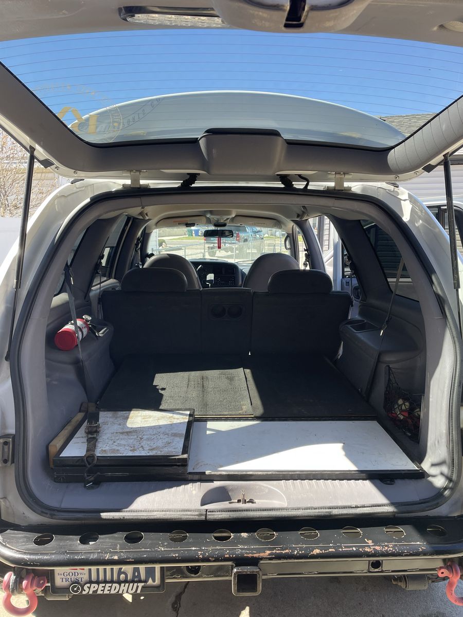 Storage: Custom roof track system (fits a Roof Top Tent).