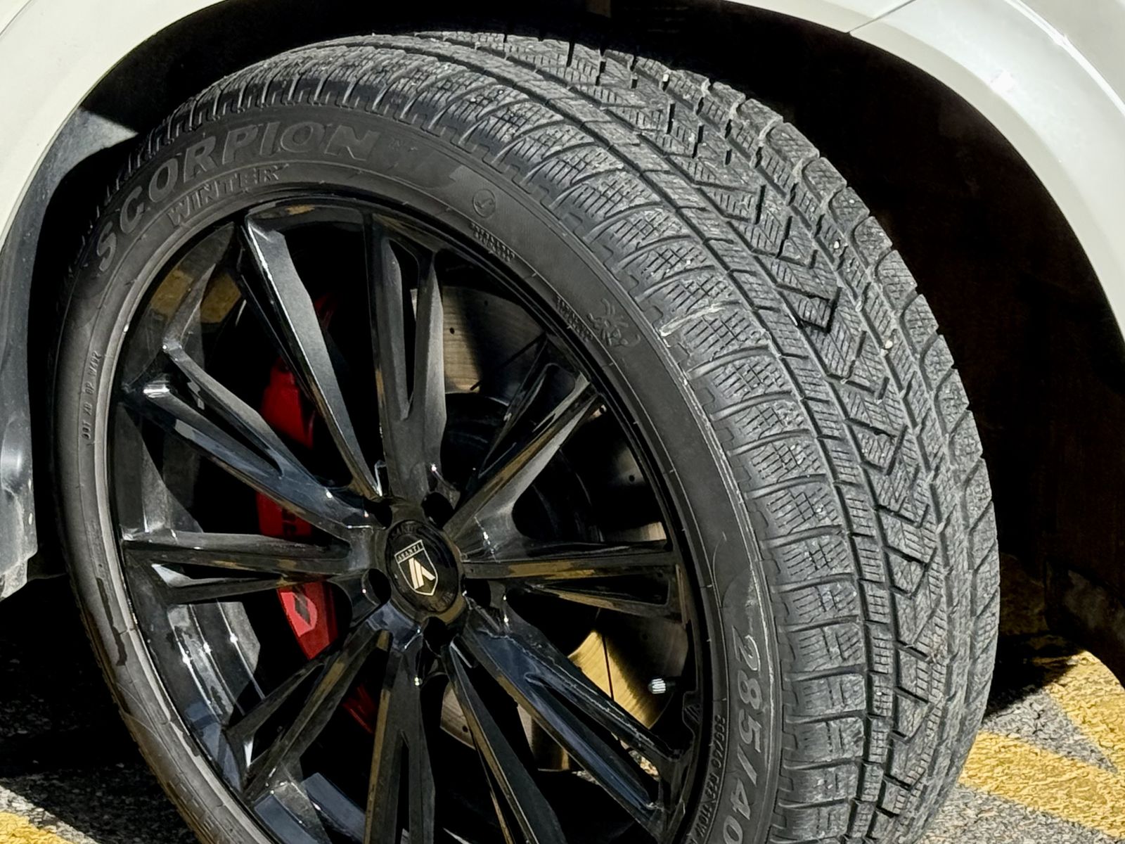 Current Wheels/Tires Setup: High-performance Pirelli Scorpion Winter tires mounted on black multi-spoke wheels (as pictured).