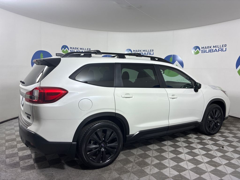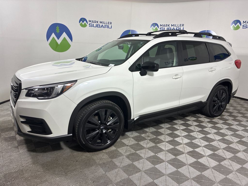 This 2022 Crystal White Pearl Subaru Ascent Onyx Edition AWD is well equipped and includes these features and benefits: PMR Navi TC (Cargo Area Cover, Dual Glass Panoramic Power Moonroof, and Radio: Subaru STARLINK 8.0'' Multimedia Nav System), 2nd Row Captain's Chairs Rear Seatback Protector, 3rd Row Bench Rear Seatback Protector, 3rd row seats: bench, 3rd Row Sunshade, 4-Wheel Disc Brakes, 6 Speakers, ABS brakes, Aero Crossbar Set, Air Conditioning, Alloy wheels, AM/FM radio: SiriusXM, Auto High-beam Headlights, Auto-Dimming Mirror w/Compass & HomeLink, Auto-dimming Rear-View mirror, Automatic temperature control, Axle Ratio: 4.44, Black Wheel Lug Nut & Lock Set, Brake assist, Bumpers: body-color, Cargo Net, CD player, Compass, Delay-off headlights, Driver door bin, Driver vanity mirror, Dual front impact airbags, Dual front side impact airbags, Electronic Stability Control, Emergency communication system: STARLINK Safety and Security (Subscription Required), Exterior Parking Camera Rear, Four wheel independent suspension, Front anti-roll bar, Front Bucket Seats, Front Center Armrest, Front dual zone A/C, Front fog lights, Front reading lights, Fully automatic headlights, Garage door transmitter: HomeLink, Heated door mirrors, Heated Front Bucket Seats, Heated front seats, Heated steering wheel, Illuminated entry, Knee airbag, Low tire pressure warning, Occupant sensing airbag, Outside temperature display, Overhead airbag, Overhead console, Panic alarm, Passenger door bin, Passenger vanity mirror, Power door mirrors, Power driver seat, Power Liftgate, Power steering, Power windows, Radio data system, Radio: Subaru STARLINK 8.0'' Multimedia Plus System, Rear air conditioning, Rear anti-roll bar, Rear reading lights, Rear window defroster, Rear window wiper, Reclining 3rd row seat, Remote keyless entry, Security system, Speed control, Split folding rear seat, Spoiler, STARLINK/Apple CarPlay/Android Auto, StarTex Upholstery, Steering wheel mounted audio controls, Tachometer, Telescoping steering wheel, Tilt steering wheel, Traction control, Trip computer, Variably intermittent wipers, Wheels: 20'' x 7.5 J Black Finish Alloy, Windshield Sunshade, and Wireless Charger.