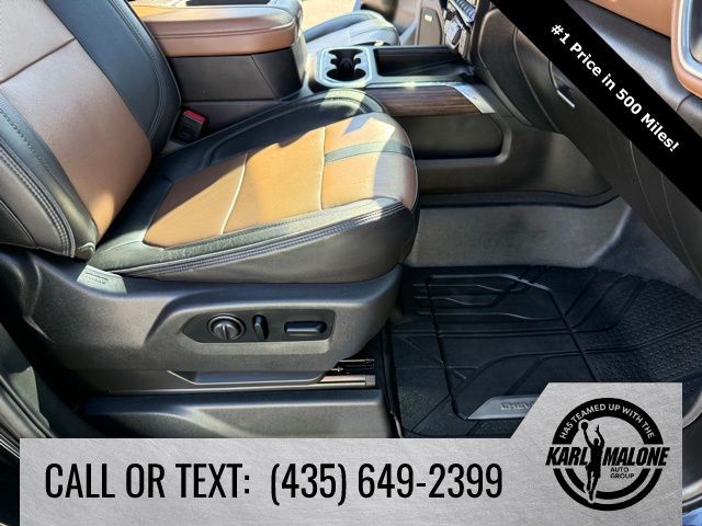 Recent Arrival! 10-Speed Automatic, 4WD, Jet Black/Umber Leather, 10-Way Power Driver Seat Adjuster w/Lumbar, 10-Way Power Passenger Seat Adjuster w/Lumbar, 12-Volt Rear Auxiliary Power Outlet, 120-Volt Bed Mounted Power Outlet, 120-Volt Instrument Panel Power Outlet, 170 Amp Alternator, 220 Amp Alternator, 2nd Row Dual USB Charge-Only Ports, 2nd Row Heated Outboard Seats, 4-Wheel Disc Brakes, 4G LTE Wi-Fi Hotspot Capable, 6'' Rectangular Chromed Tubular Assist Steps, 7 Speakers, 8'' Driver Information Center, ABS brakes, Advanced Trailering System, Air Conditioning, Alloy wheels, AM/FM radio: SiriusXM with 360L, Apple CarPlay/Android Auto, Auto-dimming door mirrors, Auto-Dimming Inside Rear-View Mirror, Auto-Dimming Inside Rearview Mirror w/Camera, Auto-dimming Rear-View mirror, Automatic Emergency Braking, Automatic temperature control, Bed View Camera w/2 Trailer Camera Provisions, Bluetooth® For Phone, Bose Premium 7 Speaker Sound System, Brake assist, Bumpers: body-color, Chevrolet Connected Access Capable, Chevytec Spray-On Black Bedliner w/Chevrolet Logo, Chrome Front Grille Bar w/Chrome Grille Inserts, Chrome Mirror Caps, Chrome Recovery Hooks, Color-Keyed Carpeting Floor Covering, Compass, Compass Located In Instrument Cluster, Deep-Tinted Glass, Delay-off headlights, Driver door bin, Driver Memory, Driver vanity mirror, Dual front impact airbags, Dual front side impact airbags, Durabed Pickup Bed, Electric Rear-Window Defogger, Electrical Lock Control Steering Column, Electronic Stability Control, Engine Block Heater, Exhaust Brake, Floor-Mounted Center Console, Following Distance Indicator, Forward Collision Alert, Front anti-roll bar, Front Bucket Seats, Front Carpeted Floor Mats, Front Center Armrest, Front dual zone A/C, Front fog lights, Front LED Fog Lamps, Front reading lights, Front wheel independent suspension, Fully automatic headlights, Garage door transmitter, Gooseneck/5th Wheel Prep Package, HD Radio, HD Surround Vision w/2 Trailer View Camera Provisions, Heated door mirrors, Heated Driver & Front Outboard Passenger Seats, Heated front seats, Heated rear seats, Heated Steering Wheel, Heated steering wheel, Heavy-Duty 80 Amp Battery, High Country Deluxe, Hill Descent Control, Hitch Guidance w/Hitch View, Illuminated entry, Integrated Trailer Brake Controller, IntelliBeam Automatic High Beam On/Off, Keyless Open & Start, Lane Change Alert w/Side Blind Zone Alert, Lane Departure Warning System, Leather-Wrapped Steering Wheel, LED Cargo Area Lighting, Low tire pressure warning, Manual Tilt/Telescoping Steering Column, Memory seat, Multicolor 15'' Diagonal Head-Up Display, Navigation System, Occupant sensing airbag, OnStar & Chevrolet Connected Services Capable, Outside temperature display, Overhead airbag, Overhead console, Panic alarm, Passenger door bin, Passenger vanity mirror, Perforated Leather Seating Surfaces, Polished Exhaust Tip, Power Door Locks, Power door mirrors, Power driver seat, Power Front Passenger Windows w/Express Up/Down, Power Front Windows w/Driver Express Up/Down, Power passenger seat, Power Rear Windows w/Express Down, Power Sliding Rear Window w/Defogger, Power steering, Power Sunroof, Power windows, Power-Adjustable Outside Mirrors, Power-Retractable Assist Steps, Preferred Equipment Group 3LZ, Premium audio system: Chevrolet Infotainment 3 Premium, Radio: Chevrolet Infotainment 3 Premium System, Rear Carpeted Floor Mats, Rear Cross Traffic Alert, Rear reading lights, Rear seat center armrest, Rear step bumper, Rear Wheelhouse Liners, Rear window defroster, Remote keyless entry, Remote Vehicle Starter System, Safety Alert Seat, Safety Package II, Security system, SiriusXM w/360L, Speed control, Speed-sensing steering, Split folding rear seat, Steering Wheel Audio Controls, Steering wheel mounted audio controls, Steering Wheel Mounted Electronic Cruise Control, Suspension Package, Tachometer, Technolo
