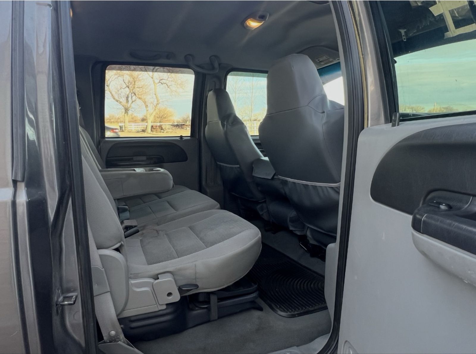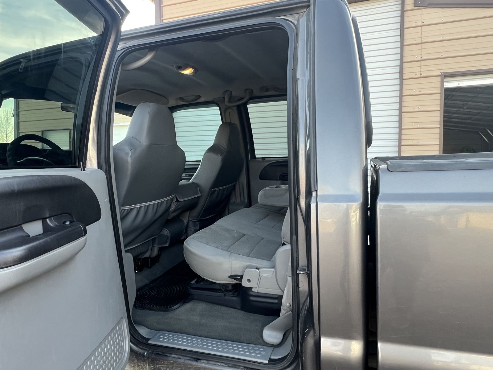 Crew cab with seating for 6 and a bed liner.
