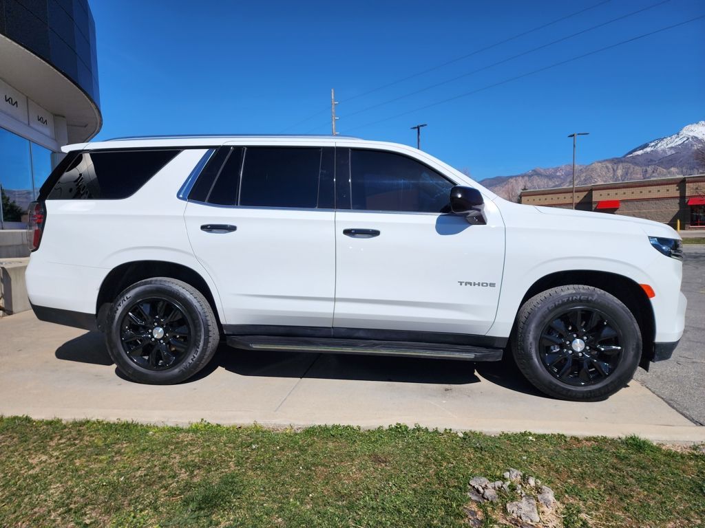 Summit White 2024 Chevrolet Tahoe LS 4WD 10-Speed Automatic with Overdrive EcoTec3 5.3L V8 4WD, Jet Black Cloth, 1st & 2nd Row Color-Keyed Carpeted Floor Mats, 3.23 Rear Axle Ratio, 3rd row seats: split-bench, 4-Wheel Disc Brakes, 6 Speakers, 6-Speaker Audio System Feature, ABS brakes, Air Conditioning, Alloy wheels, AM/FM radio: SiriusXM with 360L, Apple CarPlay/Android Auto, Auto High-beam Headlights, Automatic temperature control, Brake assist, Bumpers: body-color, Color-Keyed Carpeting Floor Covering, Compass, Delay-off headlights, Driver & Front Outboard Passenger Airbags, Driver Alert Package, Driver door bin, Driver vanity mirror, Dual front impact airbags, Dual front side impact airbags, Electronic Stability Control, Emergency communication system: OnStar and Chevrolet connected services capable, Floor Console w/Storage Area, Four wheel independent suspension, Front anti-roll bar, Front Bucket Seats, Front Center Armrest, Front dual zone A/C, Front High-Back Reclining Bucket Seats, Front reading lights, Fully automatic headlights, Heated door mirrors, Illuminated entry, Infotainment Display, Lane Change Alert w/Side Blind Zone Alert, LED Daytime Running Lamps, License Plate Front Mounting Package, Low tire pressure warning, Occupant sensing airbag, Outside temperature display, Overhead airbag, Overhead console, Panic alarm, Passenger door bin, Passenger vanity mirror, Power door mirrors, Power driver seat, Power passenger seat, Power steering, Power windows, Preferred Equipment Group 1LS, Premium audio system: Chevrolet Infotainment 3, Premium Cloth Seat Trim, Premium Smooth Ride Suspension, Radio: Chevrolet Infotainment 3 System, Rain sensing wipers, Rear air conditioning, Rear anti-roll bar, Rear Cross Traffic Alert, Rear reading lights, Rear seat center armrest, Rear window defroster, Rear window wiper, Remote keyless entry, Remote Start, Roof rack: xxxxxx, Security system, SiriusXM w/360L, Speed control, Speed-sensing steering, Split folding rear seat, Spoiler, Steering wheel mounted audio controls, Tachometer, Telescoping steering wheel, Tilt steering wheel, Traction control, Trip computer, Variably intermittent wipers, Voltmeter, Wheels: 18'' x 8.5'' Bright Silver Painted Aluminum, Wheels: 20'' x 9'' Painted Aluminum, Wrapped Steering Wheel, 4WD, Jet Black Cloth.