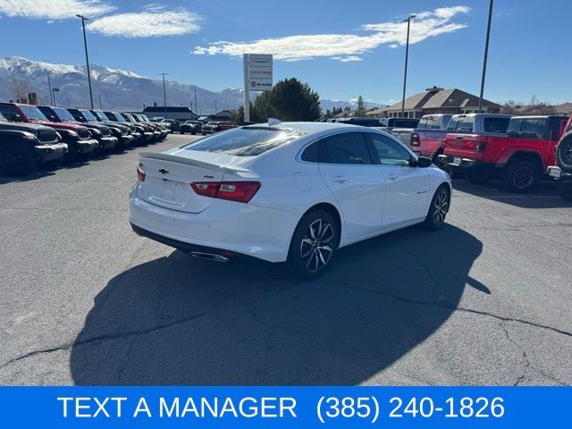 The 2024 Chevrolet Malibu RS delivers sporty styling with everyday comfort and efficiency. Powered by a responsive 1.5L turbocharged engine producing around 163 horsepower, it offers smooth performance and impressive fuel economy for your daily drive. The RS stands out with bold black exterior accents, 18-inch alloy wheels, and a sleek rear spoiler that give it a confident, athletic look. Inside, you’ll find an 8-inch touchscreen with the Chevrolet Infotainment system, wireless Apple CarPlay® and Android Auto™, plus a power driver’s seat and leather-wrapped steering wheel for added comfort. Stylish, efficient, and packed with modern tech, the Malibu RS is a sedan built to make every drive feel just a little more exciting.