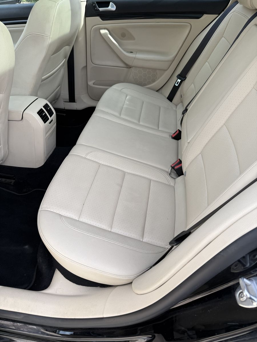 The interior is in very good condition. There are no stains or rips in the beige leatherette on the seats. The footrest area is also in very good condition.