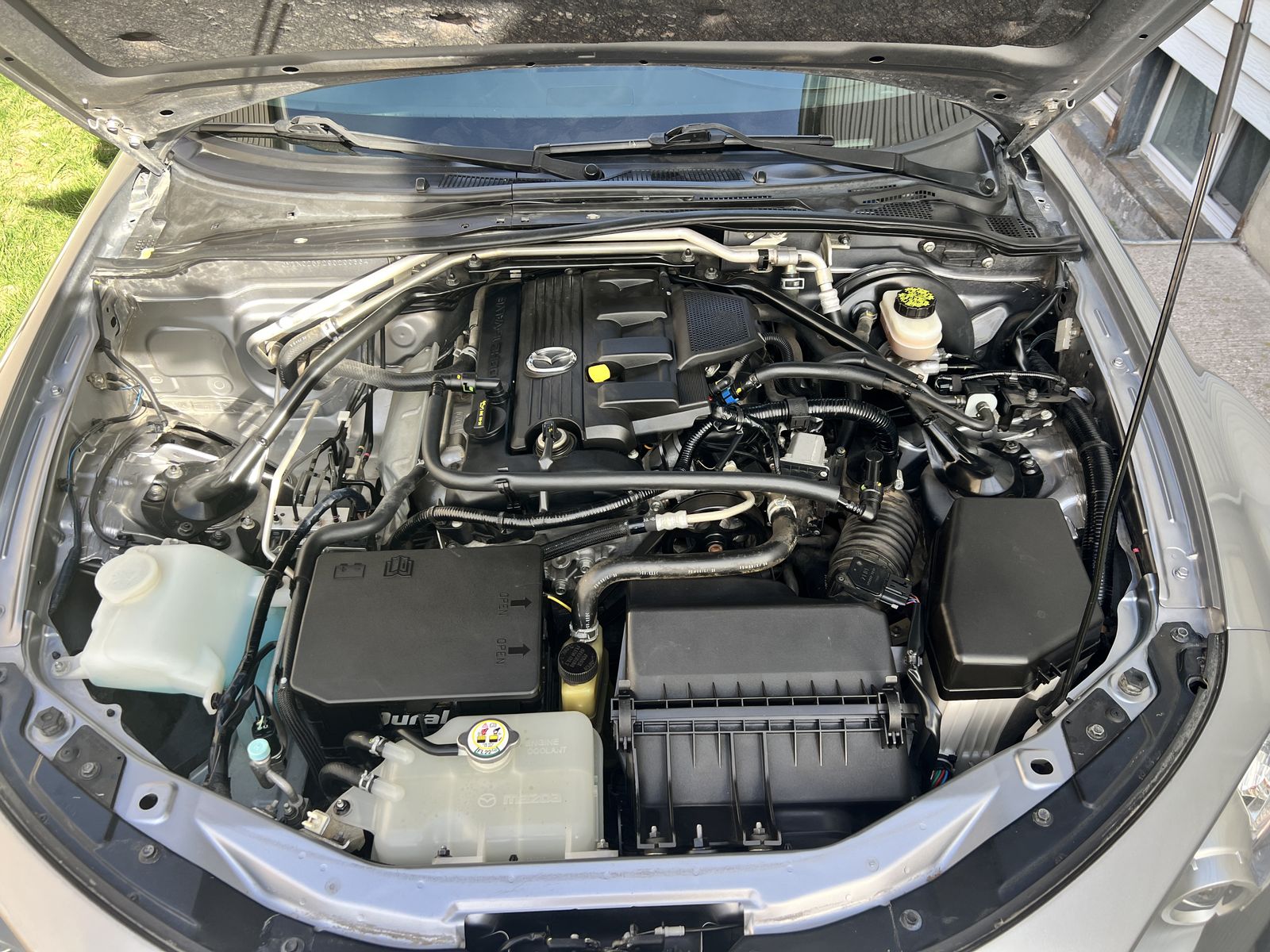 2009 Mazda Miata. Grand touring. Low mileage and runs great. Replaced the Coolant Tank Last Fall, Also re-sealed Taillights and 3rd Brake Light. Replaced and cleaned roof drains and resealed the Front Scuttle Grommet. Car Runs Great have had no issues. Tires have about 10,000 miles on them. There is some curb rash on the rims Mileage may change due to driving it off and on. There is a small spot on the drivers seat where the stitching broke not a tear in the seat. just the stitching came apart I'm going to try to get that fixed soon.
